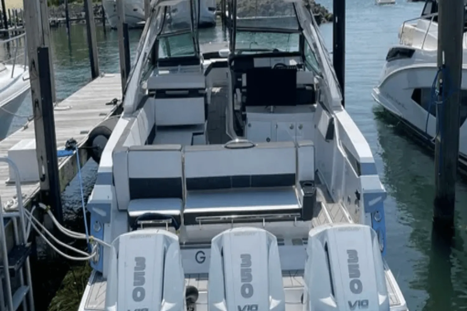 Powered by three powerful Mercury V10 Verado engines, delivering a total of 1050hp, the Monterey 385SS assures remarkable speed and agility. Navigate the waves with confidence and relish in the exhilarating experience that comes from steering this cutting-edge craft.