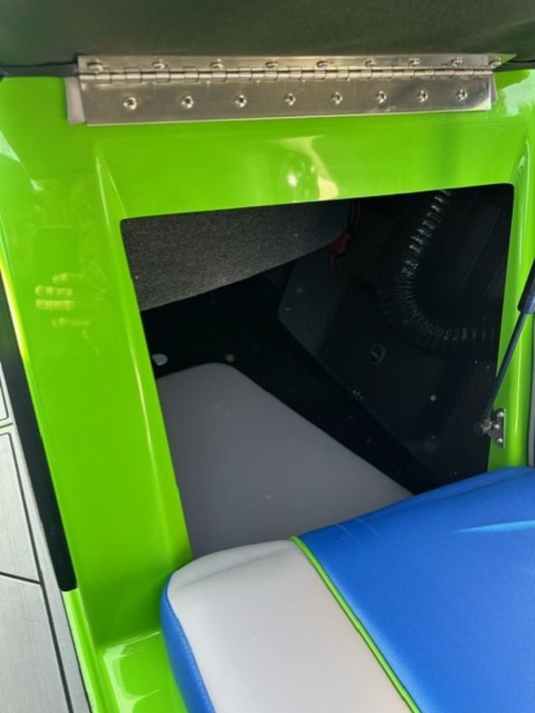 -Bow Steps Custom from Boatmate painted in Intense Green color.