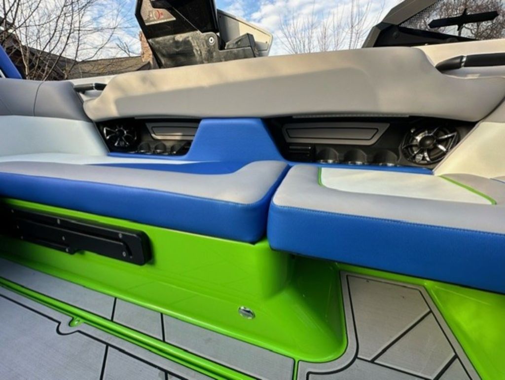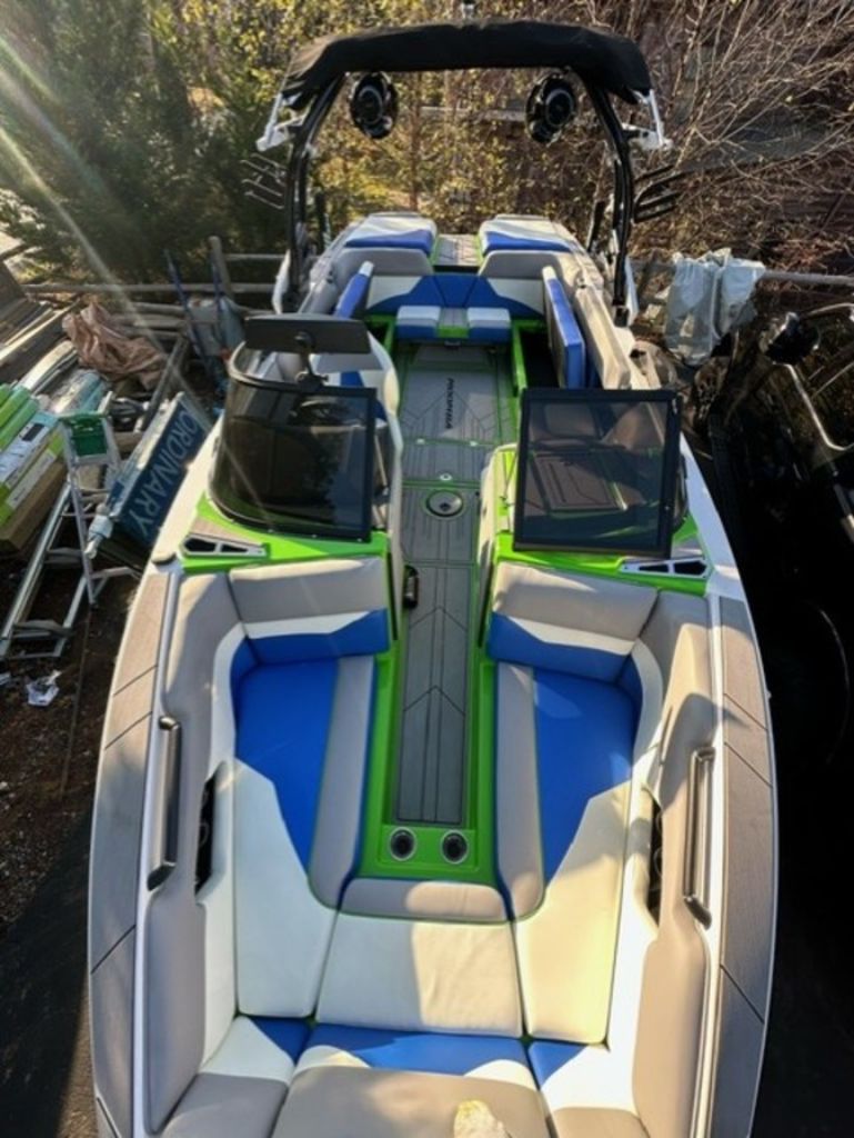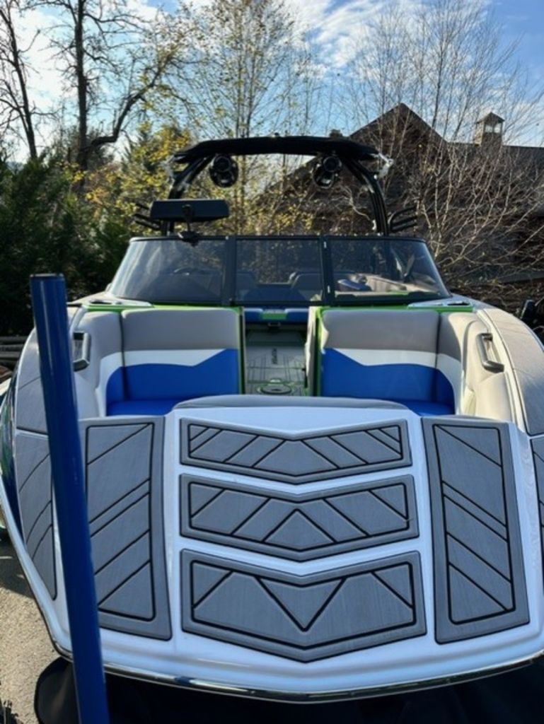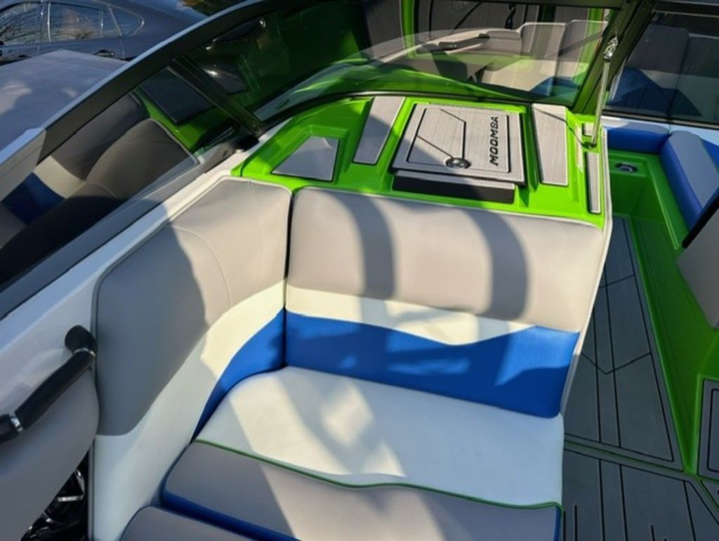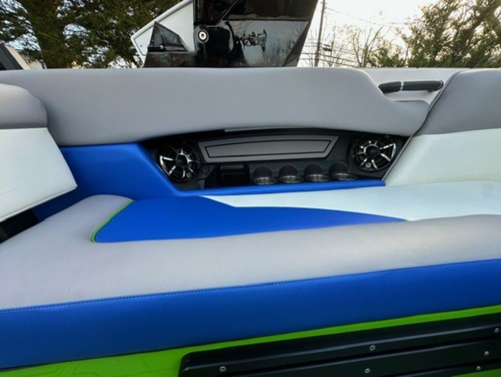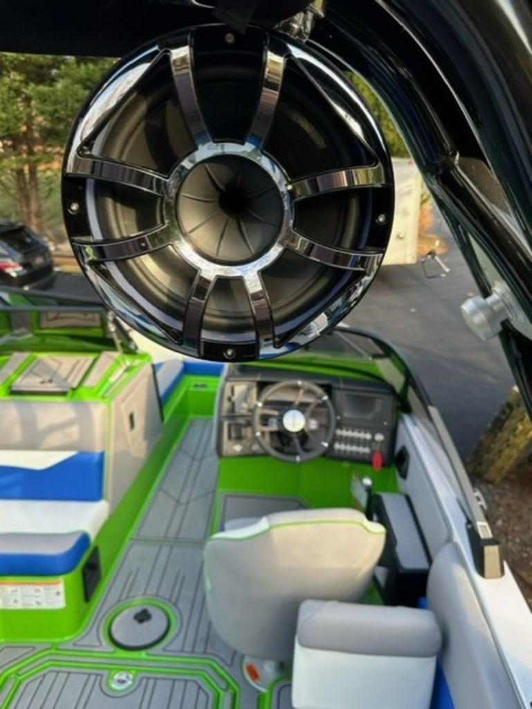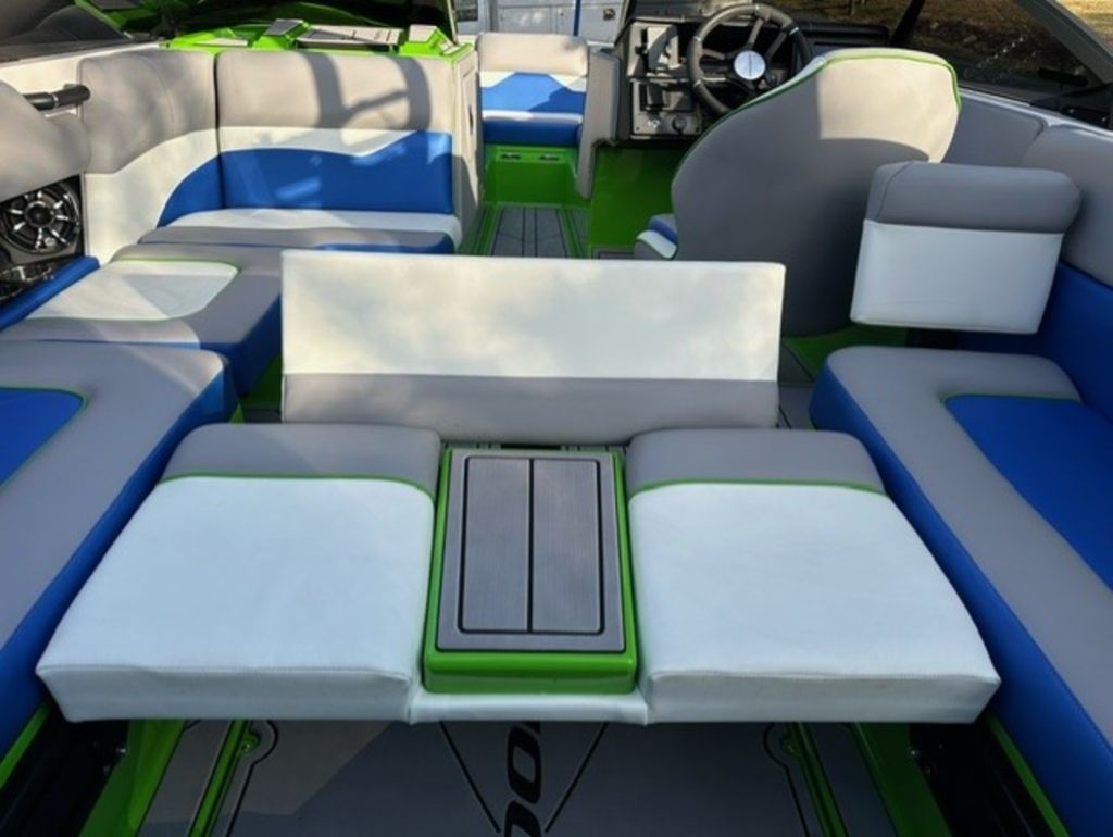 Indmar Raptor 400 Fuel Injected and Closed Cooled V8 Engine, Only 10 Hours, Flow 3 Surf System with G6 Ballast (2 pumps per zone), Center Smart WakePlate, Surf Pipe Exhaust Upgrade, Folding Pro Tower w/ Swivel board Racks, Bimini Top w/ Board Storage, Moomba 7 Touch Screen Display, Interior graphite/white with grey GatorStep Floor and Deck Kit, Stern Shade, windscreen, Premium WetSounds Stereo Upgrade w/ Rev 10 Tower Speakers, Bow Speakers, Amp, and Sub, Underwater Lights, PTM Extended Folding Ski Mirror, Dual Batteries w/ Switch, Battery Charger, Transom Side Storage Bins, Depth Finder, Water Temp, Captain's Chair w/ Bolster, Mooring Cover, Custom Matching Tandem Axle Trailer w/ Brakes, Swing Tongue, Aluminum Wheels w/ Matching Spare, runway lights, Transom Steps and Straps Included!