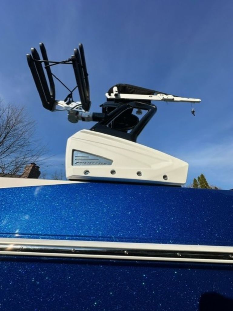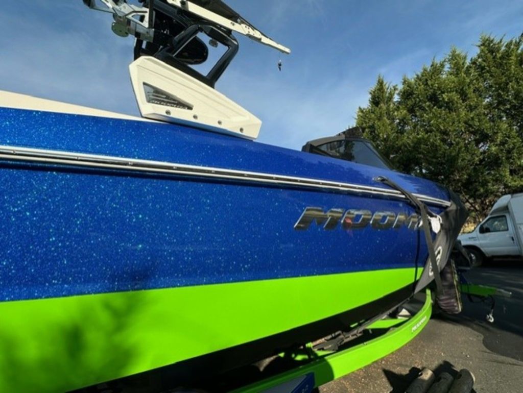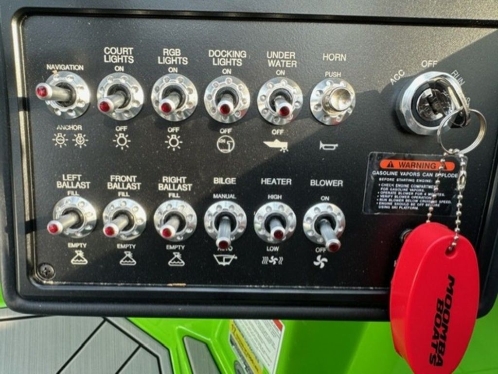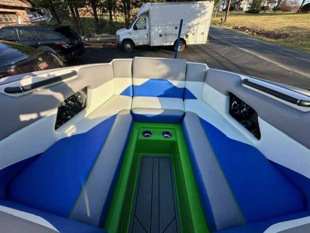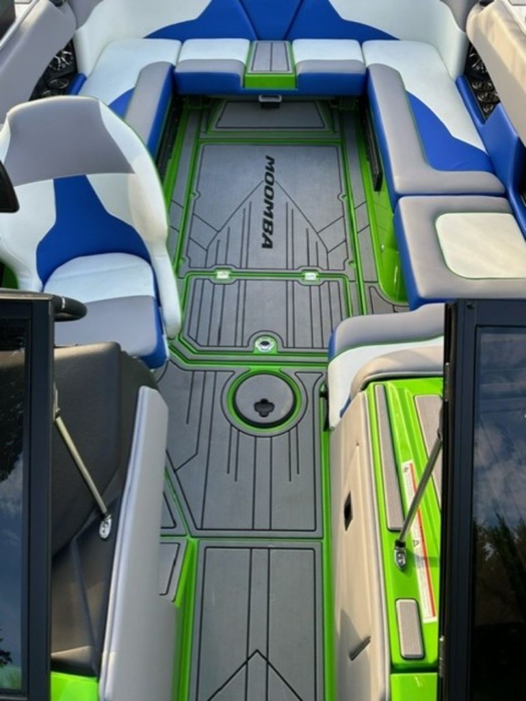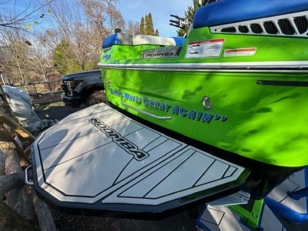 Indmar Raptor 400 Fuel Injected and Closed Cooled V8 Engine, Only 10 Hours, Flow 3 Surf System with G6 Ballast (2 pumps per zone), Center Smart WakePlate, Surf Pipe Exhaust Upgrade, Folding Pro Tower w/ Swivel board Racks, Bimini Top w/ Board Storage, Moomba 7 Touch Screen Display, Interior graphite/white with grey GatorStep Floor and Deck Kit, Stern Shade, windscreen, Premium WetSounds Stereo Upgrade w/ Rev 10 Tower Speakers, Bow Speakers, Amp, and Sub, Underwater Lights, PTM Extended Folding Ski Mirror, Dual Batteries w/ Switch, Battery Charger, Transom Side Storage Bins, Depth Finder, Water Temp, Captain's Chair w/ Bolster, Mooring Cover, Custom Matching Tandem Axle Trailer w/ Brakes, Swing Tongue, Aluminum Wheels w/ Matching Spare, runway lights, Transom Steps and Straps Included!