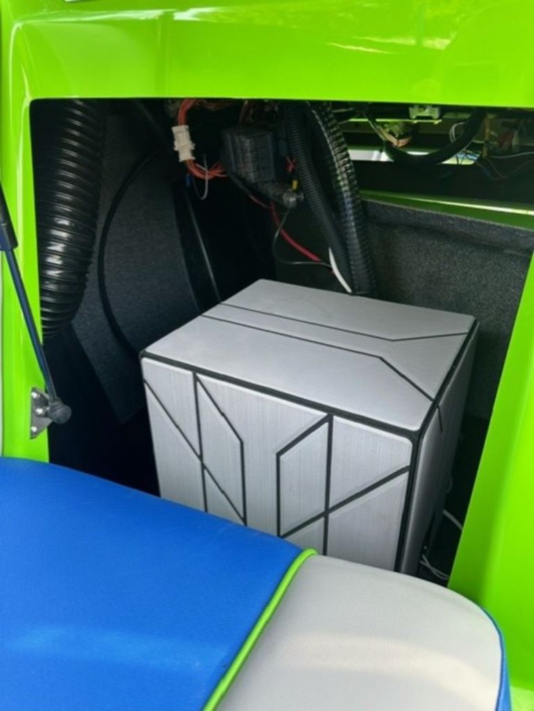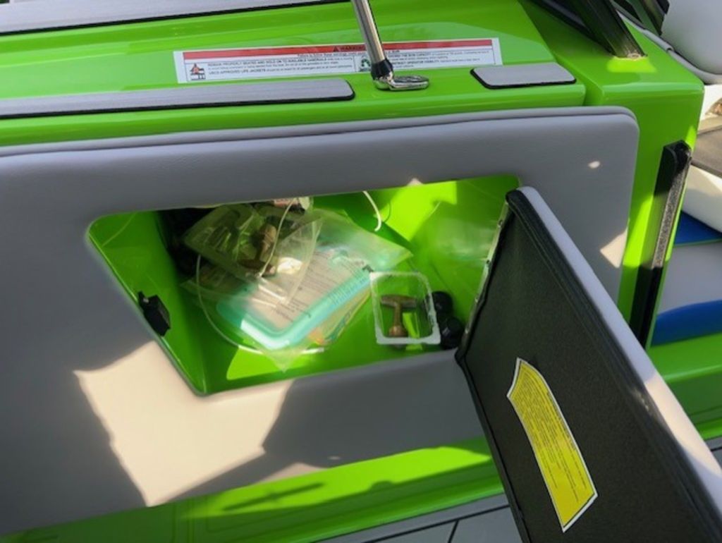 -Bow Steps Custom from Boatmate painted in Intense Green color.