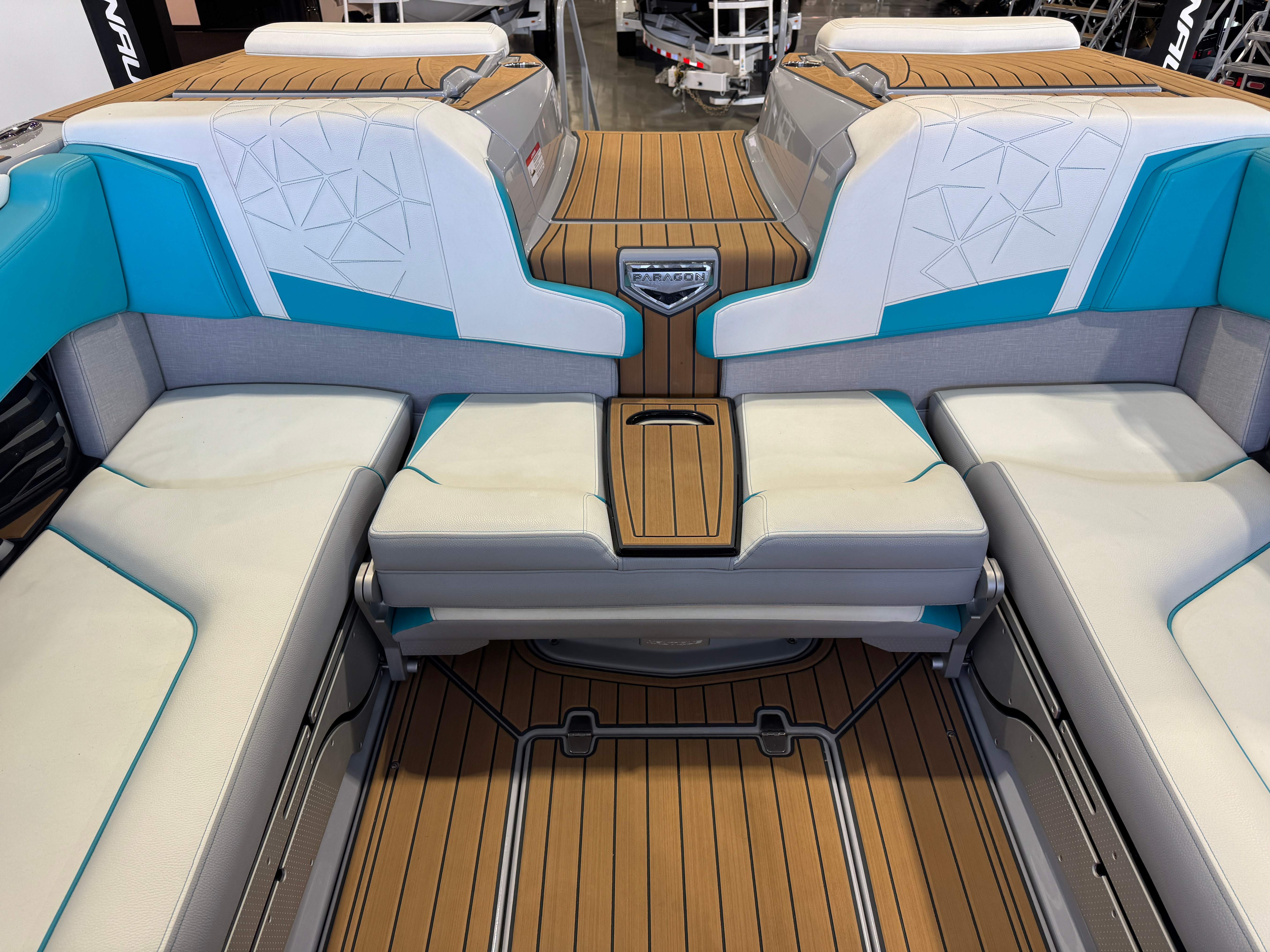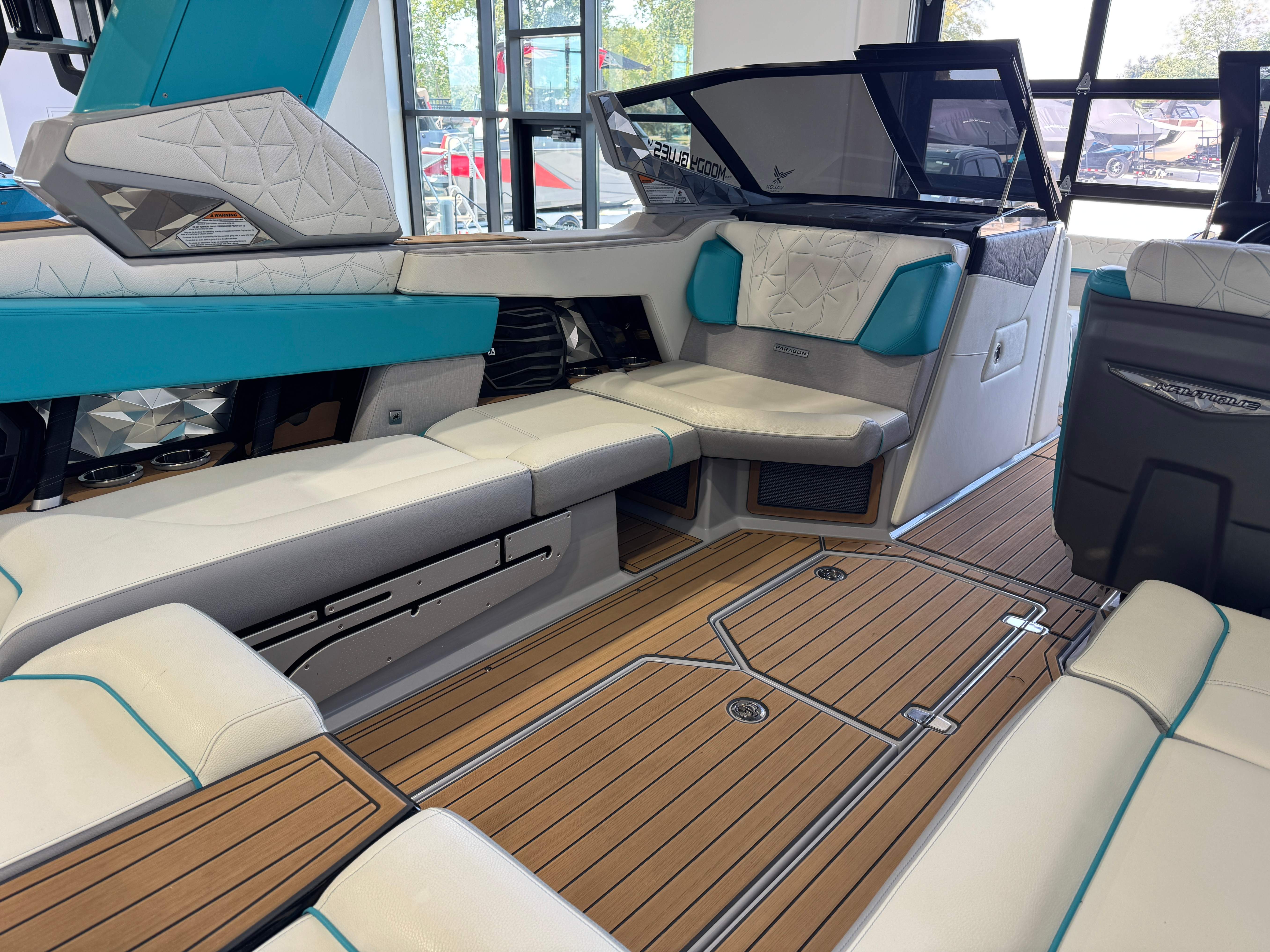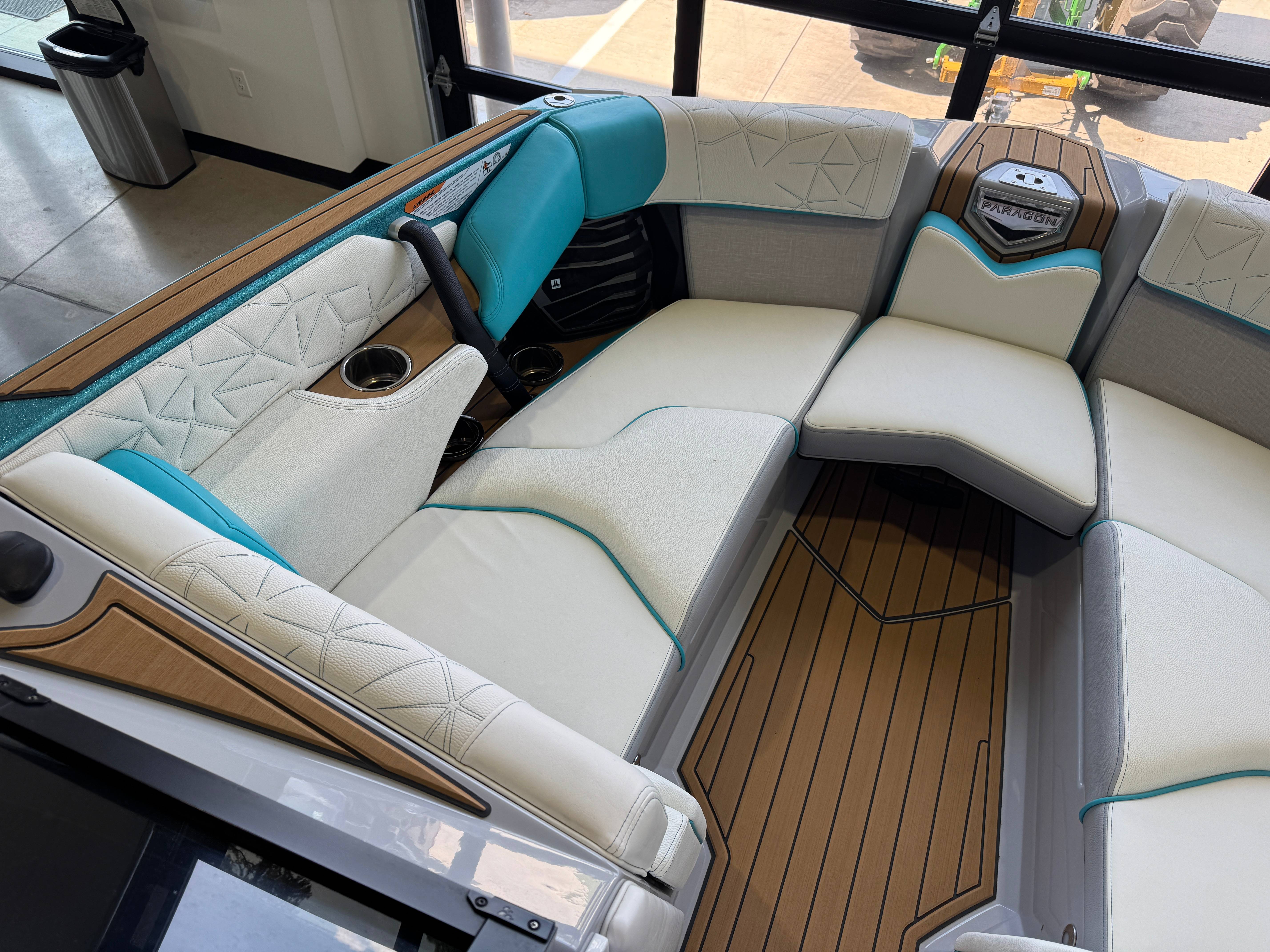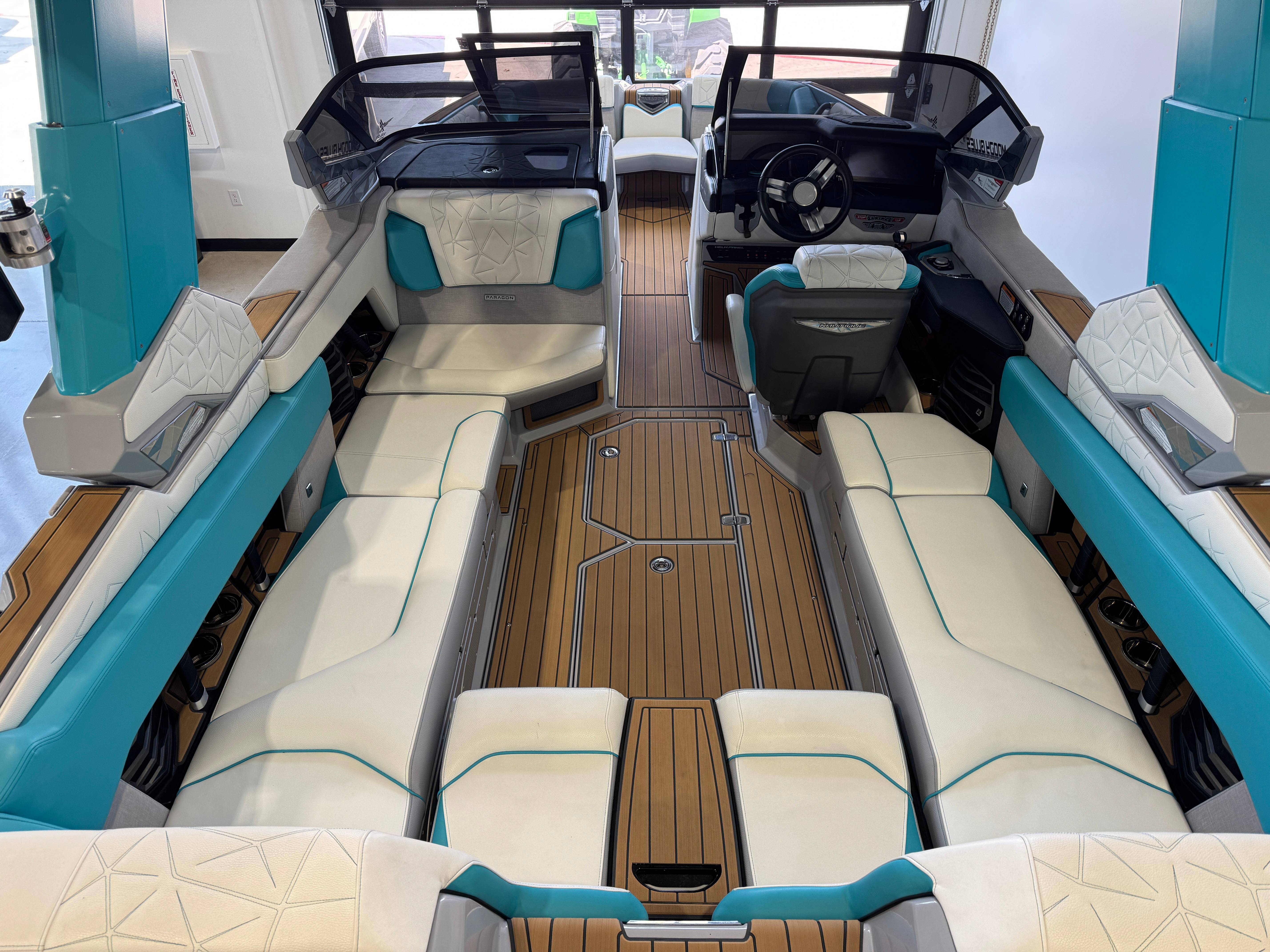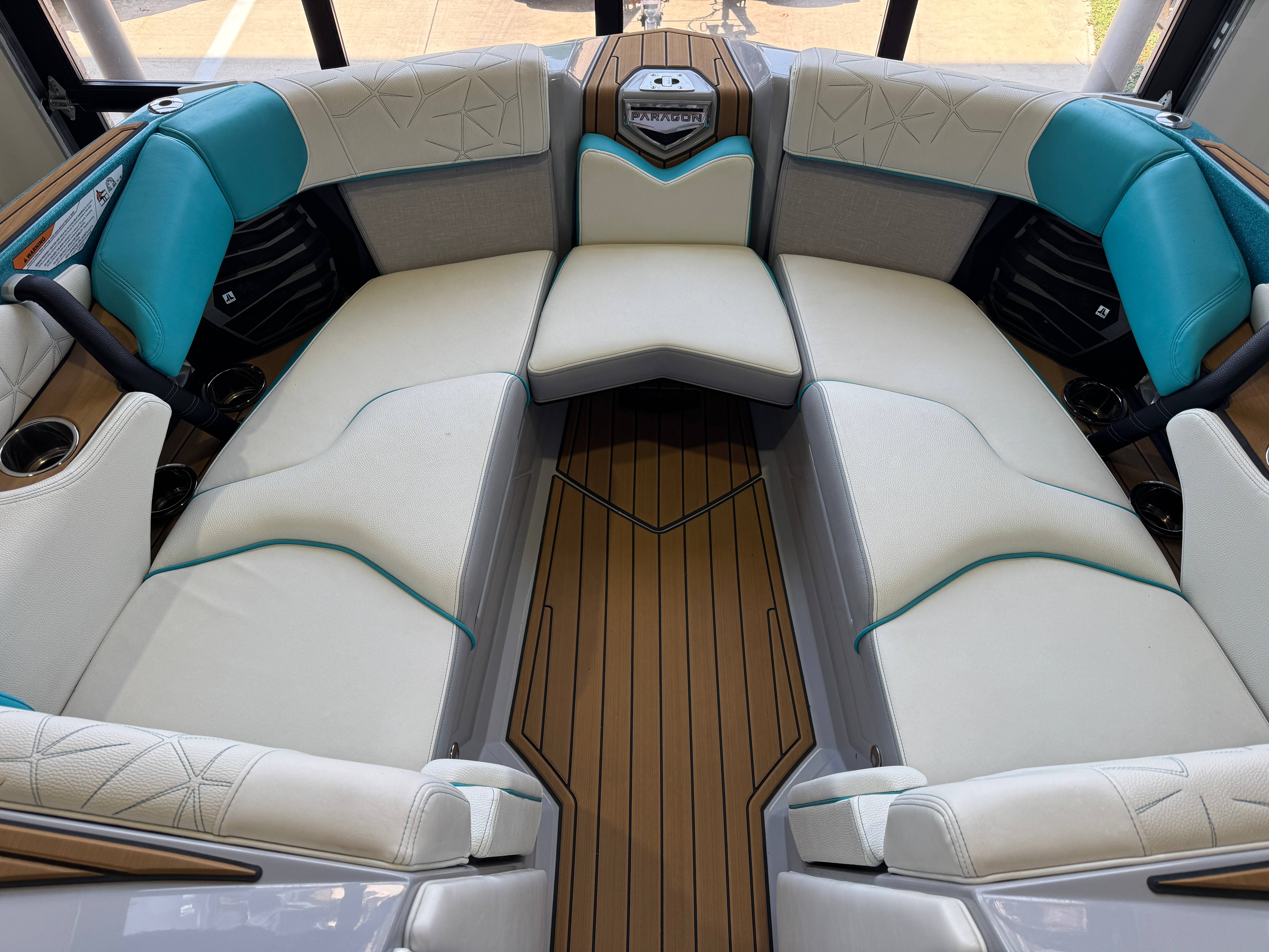 2023 Super Air Nautique Paragon 23 Standard Items Listed Below Nautique Configurable Running Surface with Hydro-Plate Nautique Dual LINC PANORAY with Helm Control, Zero Off, MyNautique™ Connectivity Platform Wireless Charging Nautique Surf System™ with WAVEPLATE & Surf Pipe Exhaust & Integrated Ballast (2,200 lbs) Paragon Telescoping Flight Control Tower System including: Nautique Awareness Camera, Strapless Board Racks, Bimini Top with Surf Pockets Stereo - JL Audio® M6 Series Studio Elite with WavefrontTM (Includes: Wavefront™, Dual Subwoofers (12"), Monoblock Subwoofer Amplifier) Tower Speakers - Dual Speaker Housing, JL Audio® M6 Series 880x Speakers (4) Stereo - Transom Mounted Remote Control Enhanced Courtesy Lighting Package (Customized Colors on Illuminated Cupholders, Courtesy Lights and Interior Chromax Badging) LED Lighting - Navigation and Docking Light Array; Courtesy Lights; Underwater Lights Power Management Including 3 AGM Batteries, with Battery Charger Coolers (Removable In-Floor and Transom),Waste Receptacle Freshwater Engine Flush System Tandem Spoke Leather Steering Wheel Sliding Reversible Stern Seat, Flip-Up Lounge Seat (Port) and Convertible Transom Seating Seating - Bow Armrests (Retractable) GoPro™ Ready Rotating Tow Point Walk-Thru Air-Dam (Pocket Door) Ladder - Platform Access Cleats (4) Premium Mirror