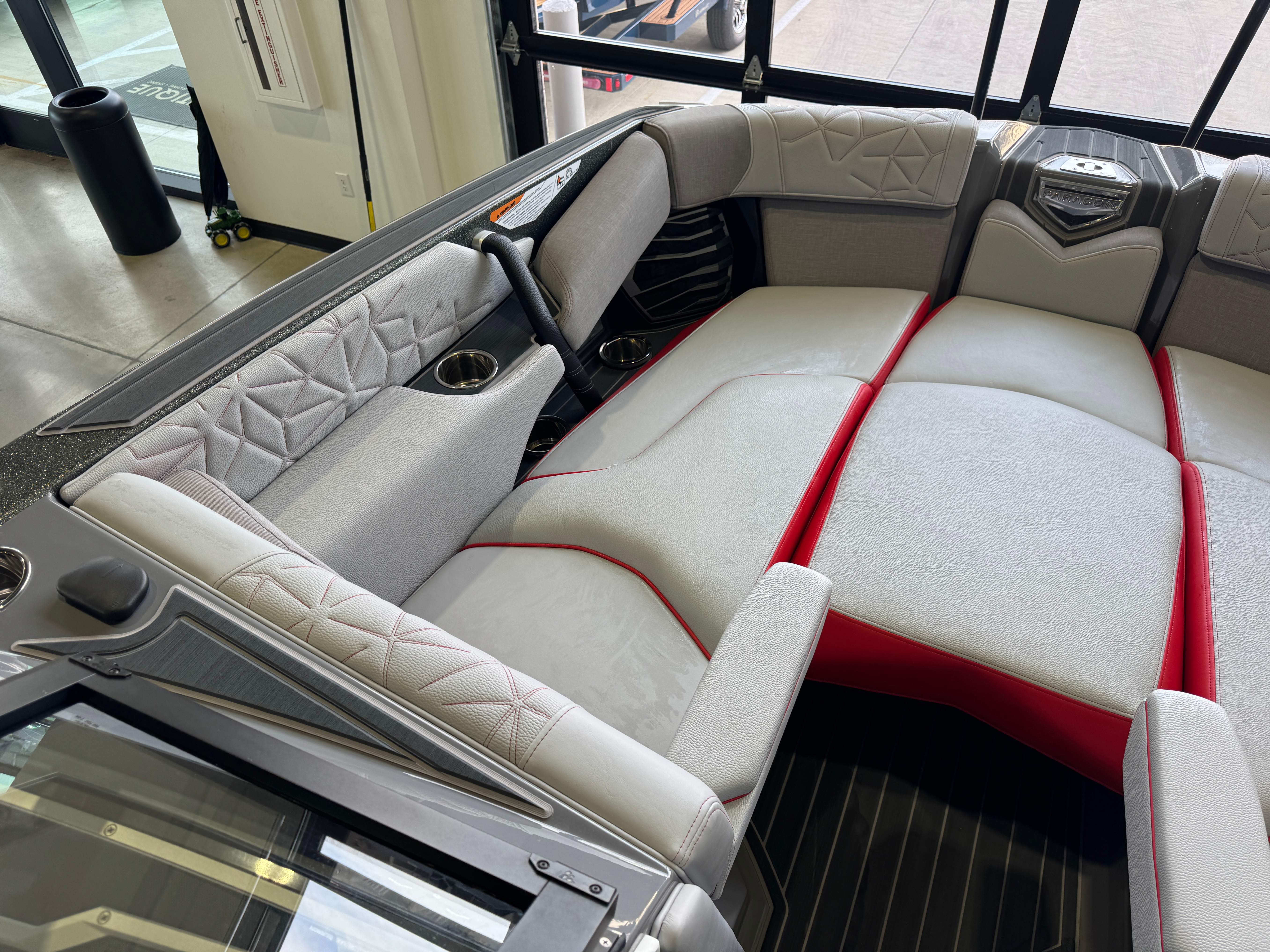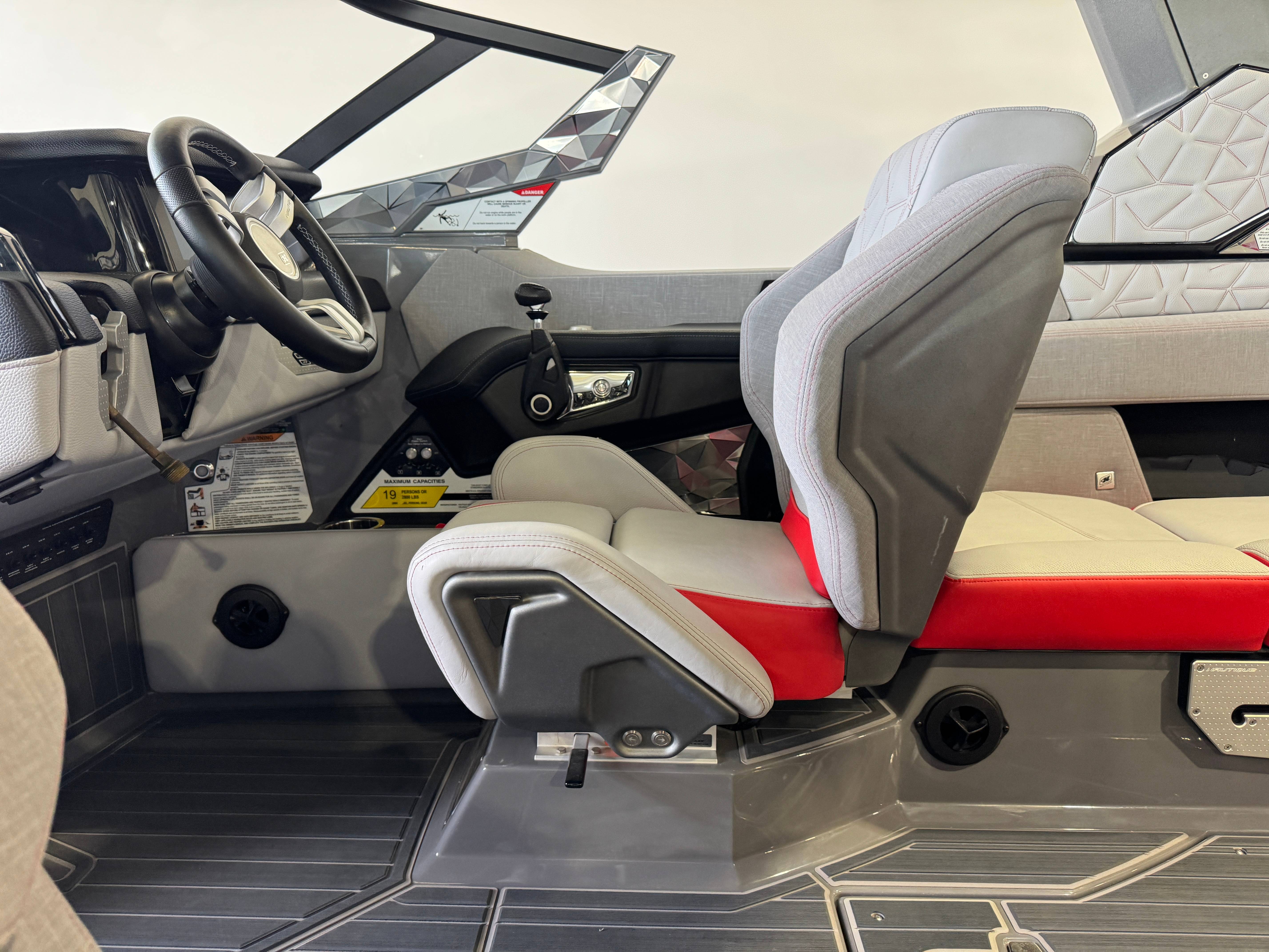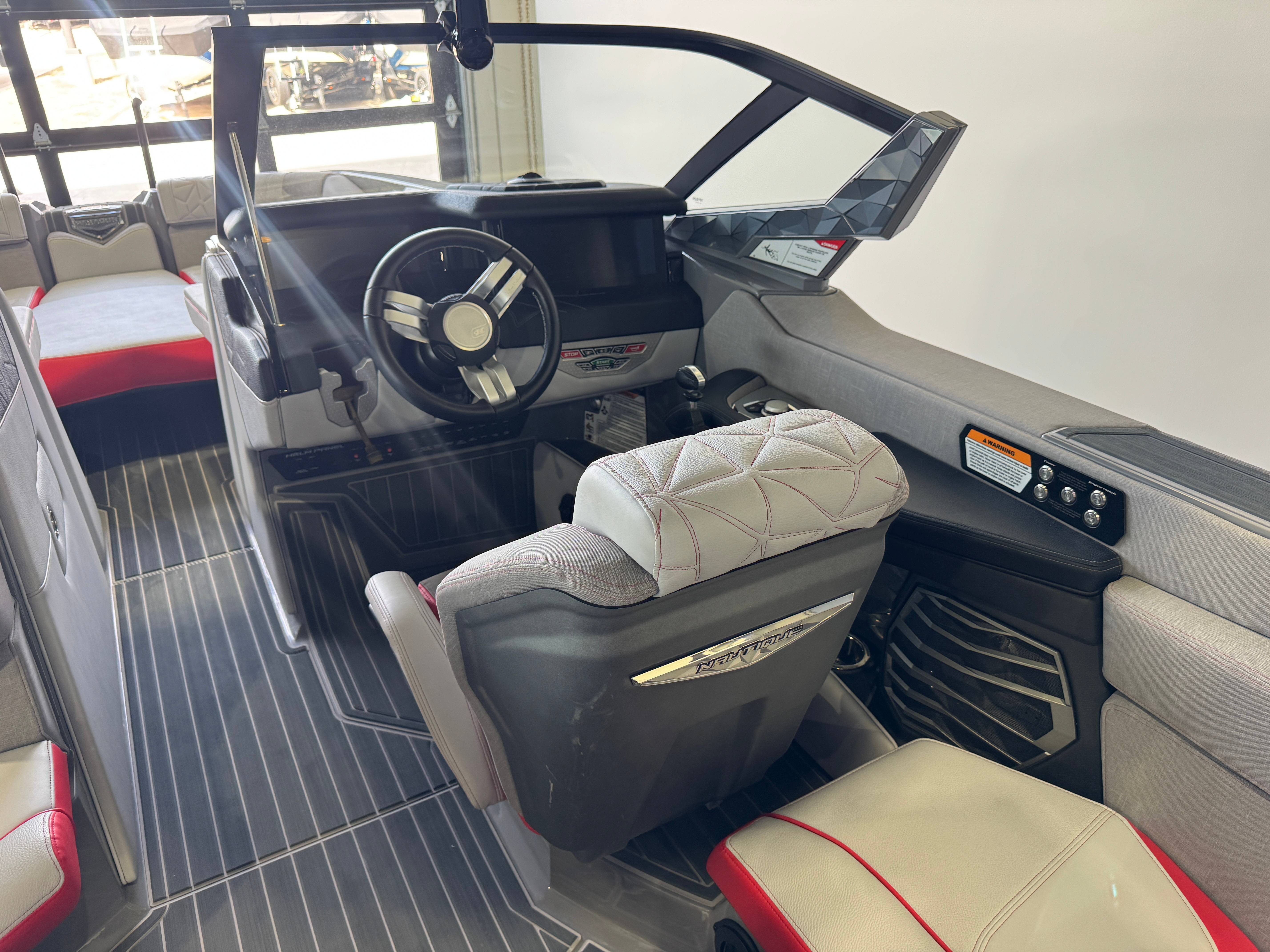 2023 Super Air Nautique Paragon 23 Standard Items Listed Below Nautique Configurable Running Surface with Hydro-Plate Nautique Dual LINC PANORAY with Helm Control, Zero Off, MyNautique™ Connectivity Platform Wireless Charging Nautique Surf System™ with WAVEPLATE & Surf Pipe Exhaust & Integrated Ballast (2,200 lbs) Paragon Telescoping Flight Control Tower System including: Nautique Awareness Camera, Strapless Board Racks, Bimini Top with Surf Pockets Stereo - JL Audio® M6 Series Studio Elite with WavefrontTM (Includes: Wavefront™, Dual Subwoofers (12"), Monoblock Subwoofer Amplifier) Tower Speakers - Dual Speaker Housing, JL Audio® M6 Series 880x Speakers (4) Stereo - Transom Mounted Remote Control Enhanced Courtesy Lighting Package (Customized Colors on Illuminated Cupholders, Courtesy Lights and Interior Chromax Badging) LED Lighting - Navigation and Docking Light Array; Courtesy Lights; Underwater Lights Power Management Including 3 AGM Batteries, with Battery Charger Coolers (Removable In-Floor and Transom),Waste Receptacle Freshwater Engine Flush System Tandem Spoke Leather Steering Wheel Sliding Reversible Stern Seat, Flip-Up Lounge Seat (Port) and Convertible Transom Seating Seating - Bow Armrests (Retractable) GoPro™ Ready Rotating Tow Point Walk-Thru Air-Dam (Pocket Door) Ladder - Platform Access Cleats (4) Premium Mirror