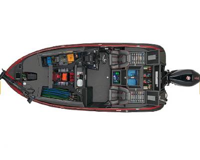 On the front fishing platform, there's plenty of storage below and a trolling motor at the bow. The boat also has pop-up cleats to keep fishing lines clear.