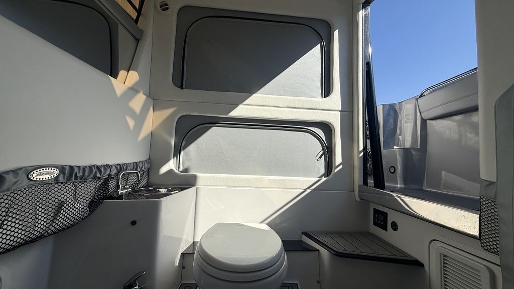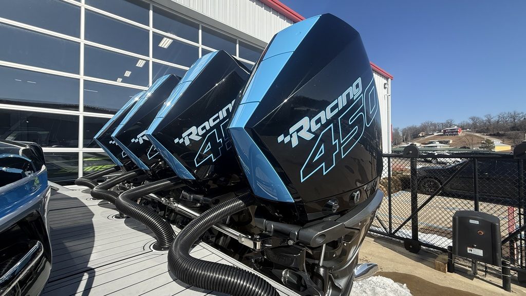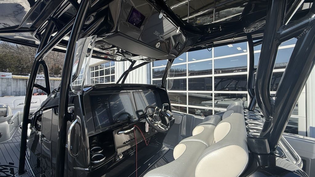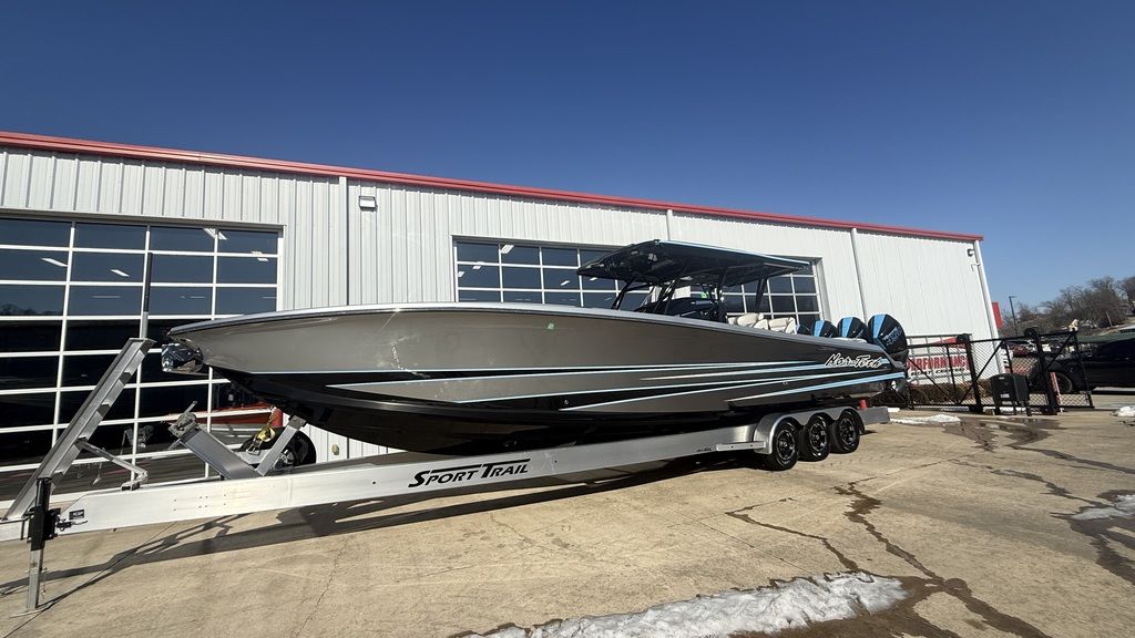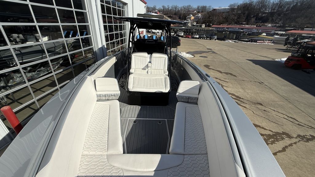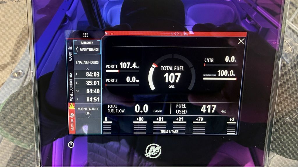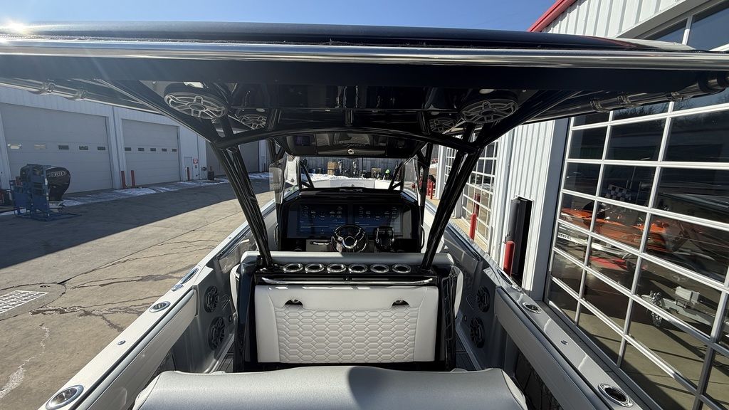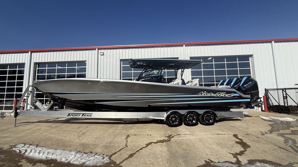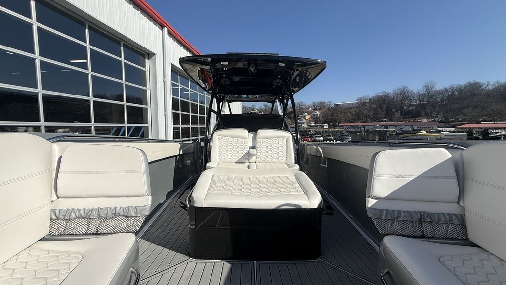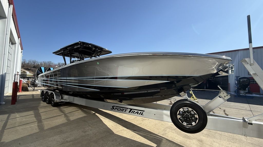Keyless ignition, Fresh water engine flush (set up to do all motors at once), Mercury zero effort throttles, Isotta steering wheel, 30” black oak light bar, Garmin Radar, Auto pilot, Flir, Twin 22” Garmins, VHF radio xm radio and weather, Lumishore color changing lights throughout, Huge JL stereo w/ 18 speakers, Bow thruster, A/C with additional batteries, Optional 85 gal. Fuel tank bringing total to 365 gal, Power Sure shade Sea deck Flooring, Bow seat back rests, Club sport seating aft, Cabin Vacuflush Head, Cabin Sink, Second row seating with sliding cooler, Double diamond stitching, 4 rod/ drink holders, Windless Anchor, Custom paint job, Aluminum Triple Axle Sport Trail Trailer Included!
