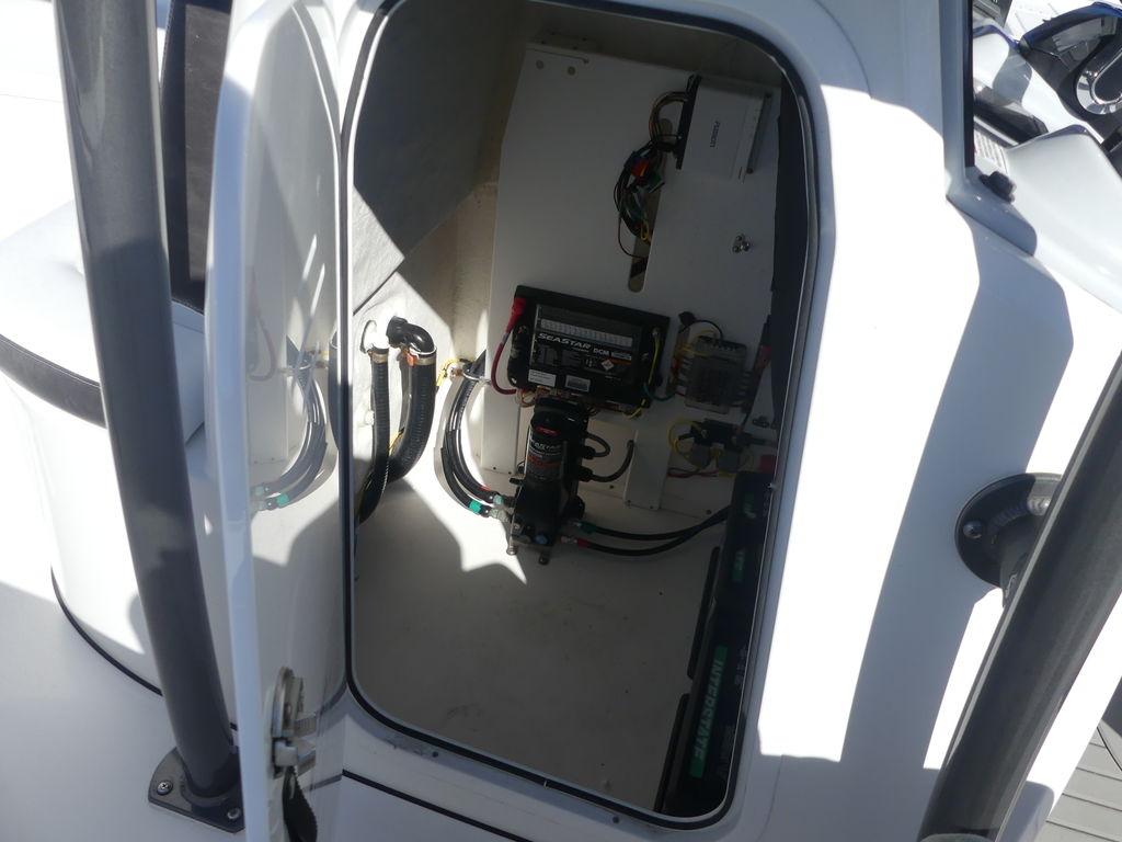 - Tilt helm with a custom stainless steel steering wheel