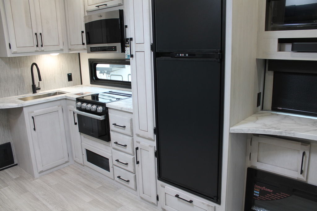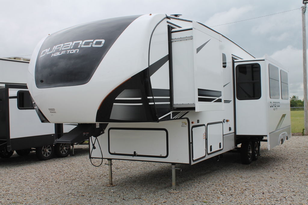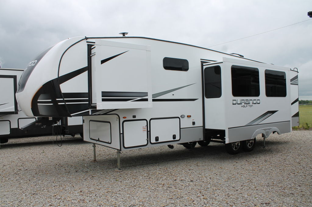 Durango Half-Ton is where lightweight travel meets fifth wheel amenities. Rest and enjoy all the comforts this RV has to offer, from the modern interiors, optional electric fireplace, and additional outdoor kitchen area (select models).