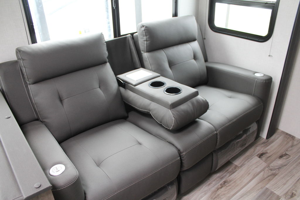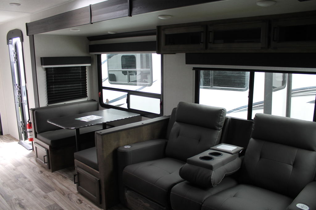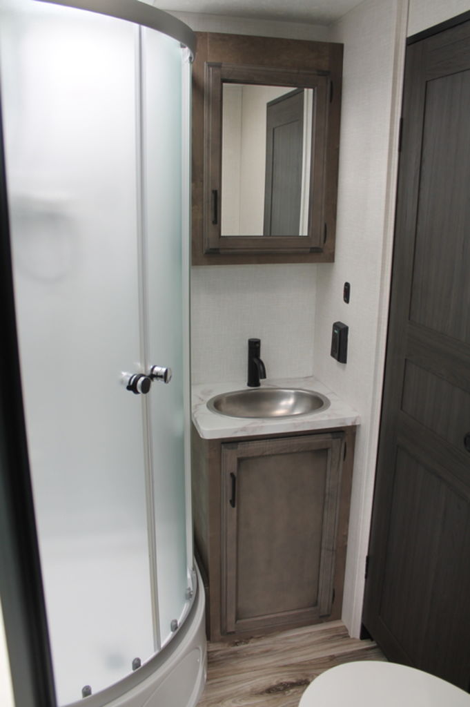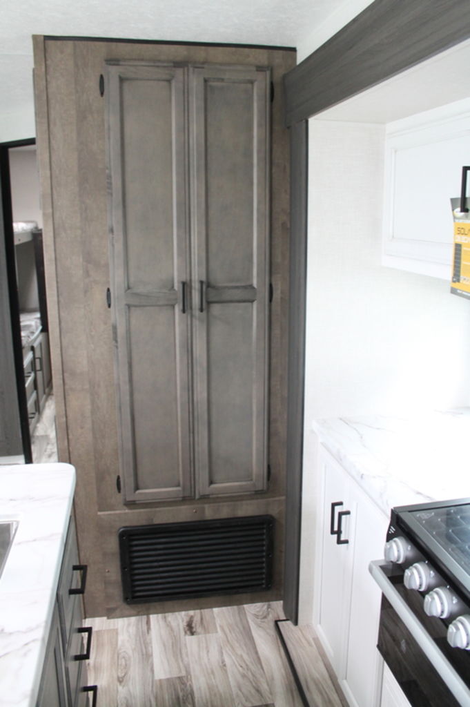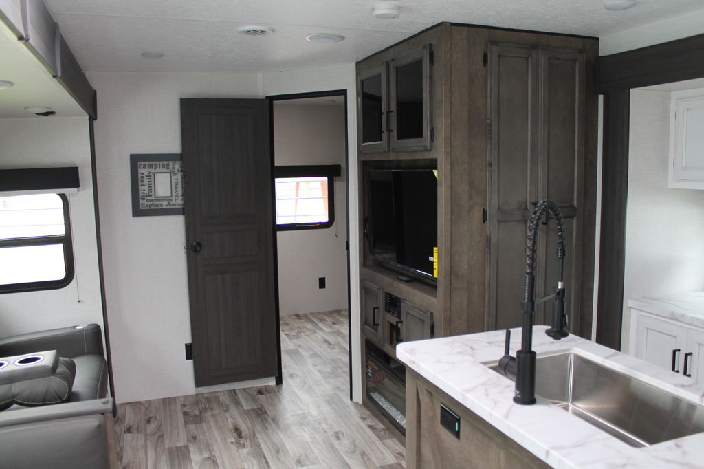 SportTrek represents user-inspired design. Purposeful residential kitchen with continuous countertops, stainless steel under-mount sink with pull-down sprayer faucet, and recessed gas cooktop with glass cover, for added counter space.