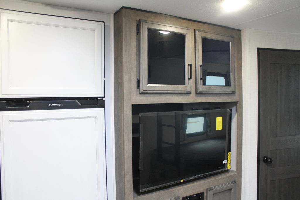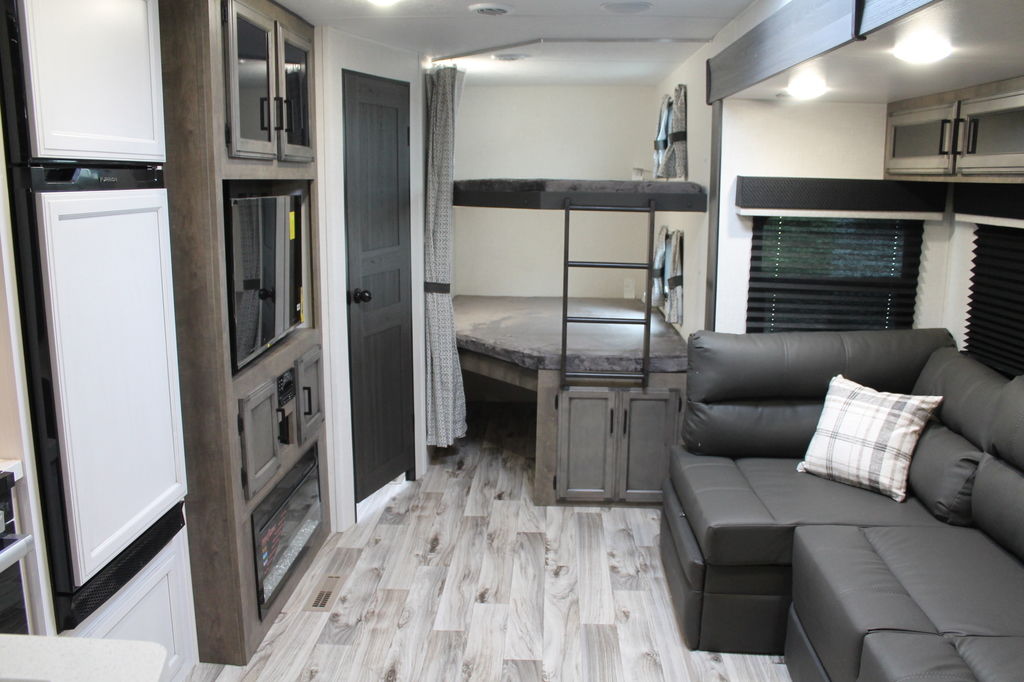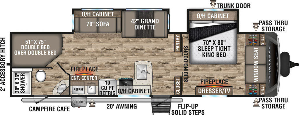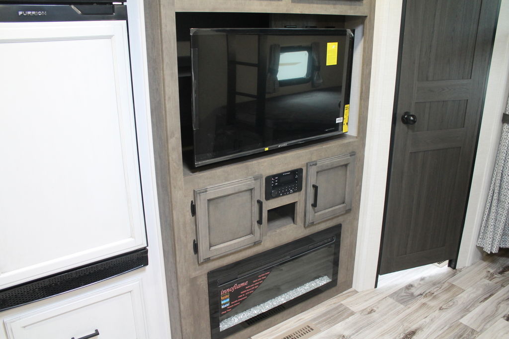- plus an additional standard 30-inch living room fireplace provides ambience throughout the trailer.