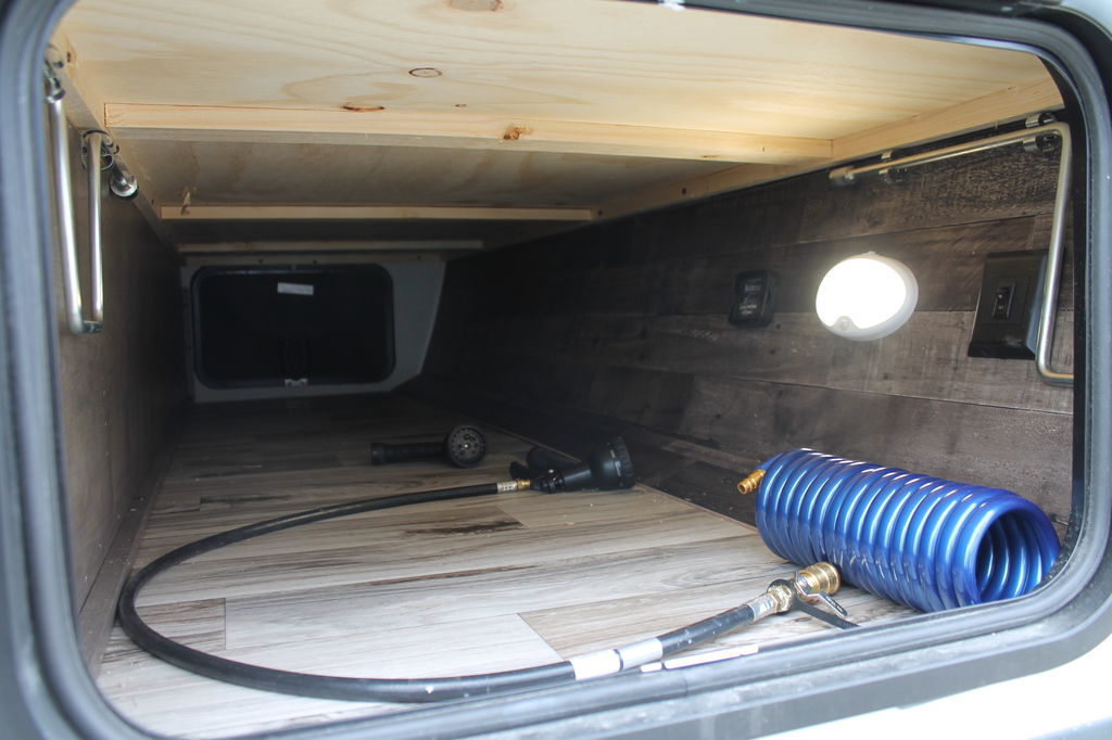 - slam latch baggage doors with magnetic catches and painted full fiberglass front cap with panoramic automotive front window.