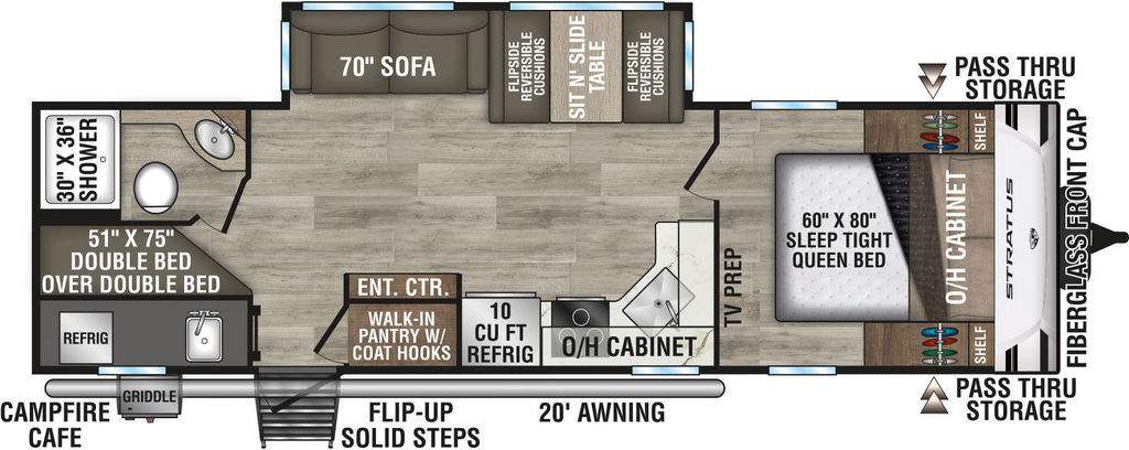 Stratus has it all... an eye-catching exterior, stunning decor and a long list of exciting standard features. Not to mention, there’s a significant amount of storage, including clever concealed spaces for out-of-sight organization.