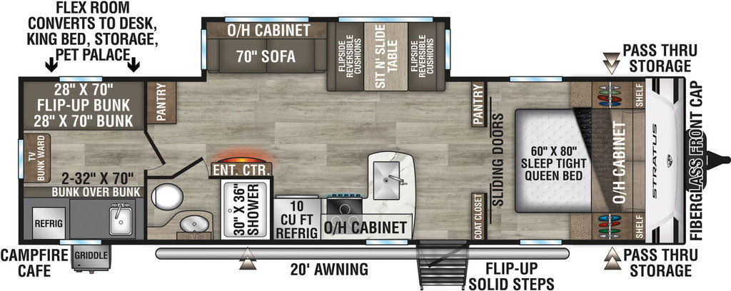 Stratus has it all... an eye-catching exterior, stunning decor and a long list of exciting standard features. Not to mention, there’s a significant amount of storage, including clever concealed spaces for out-of-sight organization.