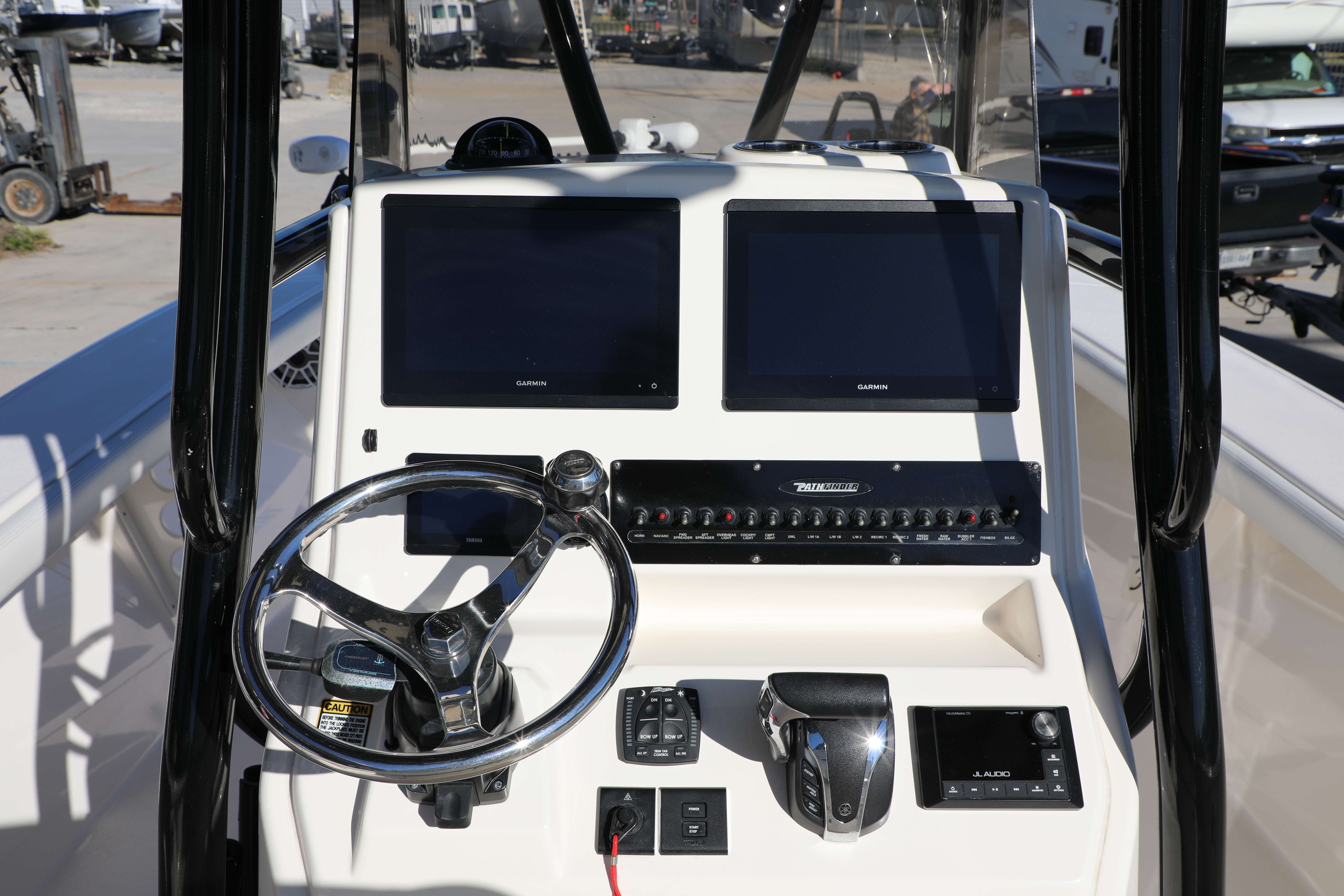 Dual Garmin GPS/MFD: Twin touchscreen displays for seamless sonar, charting, and engine integration.