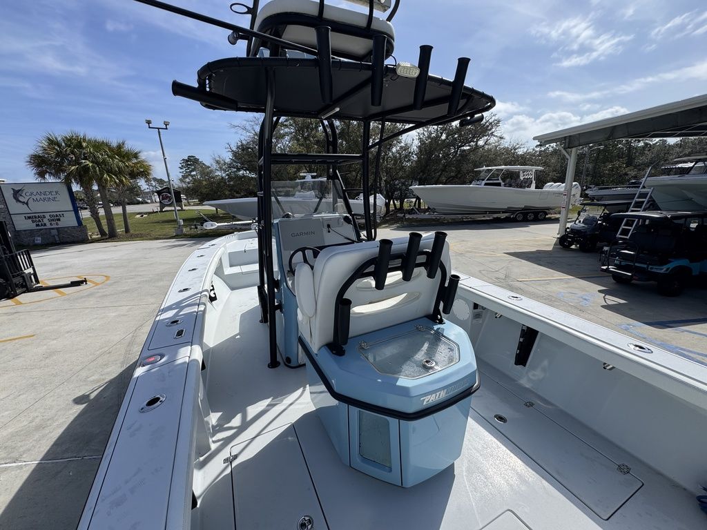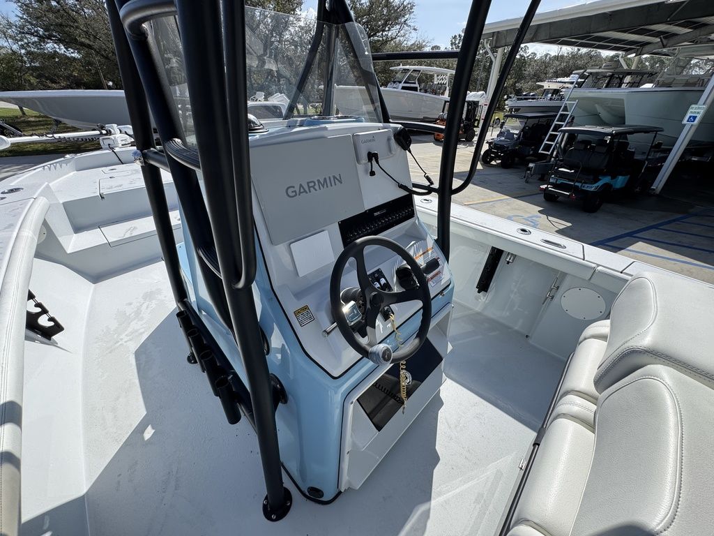 With nearly 70 gallons of standard livewell space, 3 insulated fishboxes totaling over 120 gallons, and dedicated rod racks for 18 rods ranging from fly rods to bottom and trolling gear, this boat allows you to carry everything you need to successfully target surface swimmers to bottom dwellers and everything in between. Plus, there’s enough dry storage to bring multiple cast nets and loads of tackle bags, and the console can even be optioned with a head. Finally, with a max horsepower rating of 450, standard jackplate, and a double-stepped, VARIS constructed hull, the next spot is never too far away.