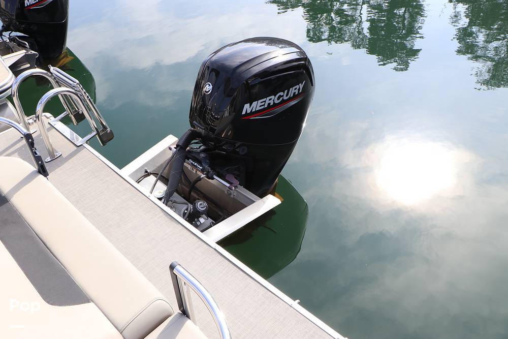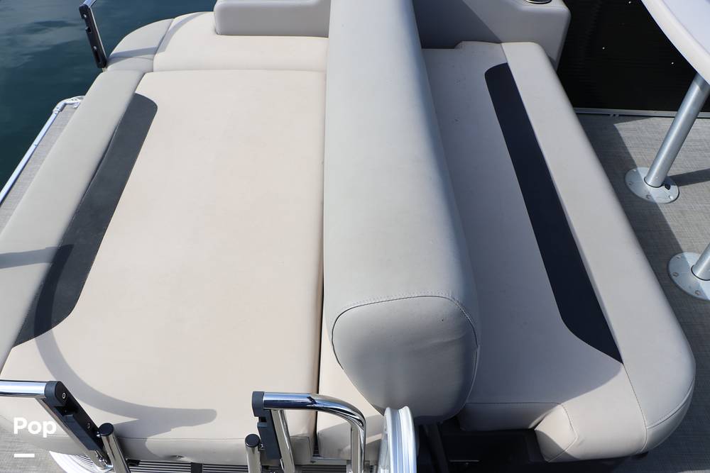 This well-equipped pontoon features a stern swim platform with a telescopic stainless-steel boarding ladder for easy water access, plus a spacious rear, padded sundeck perfect for lounging. The Slingback aft lounger can be set to face the rear of the vessel or the front. The comfortable swivel captain's chair & passenger chair make this a great configuration for enjoying your cruise, and provide excellent visibility and control. There are lots of convenient storage compartments under all lounges to keep your gear organized and secure.