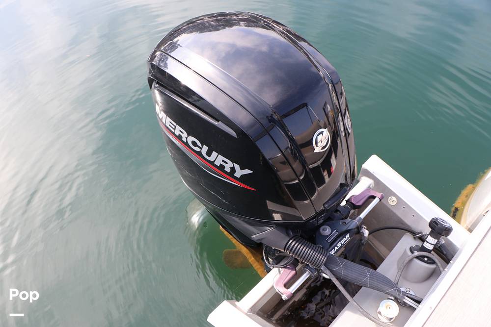 The boat comes with complete instrumentation, including a tachometer, fuel gauge, and trim gauges, as well as a convenient 12V outlet for charging devices and a Lowrance Depth / Fish Finder.