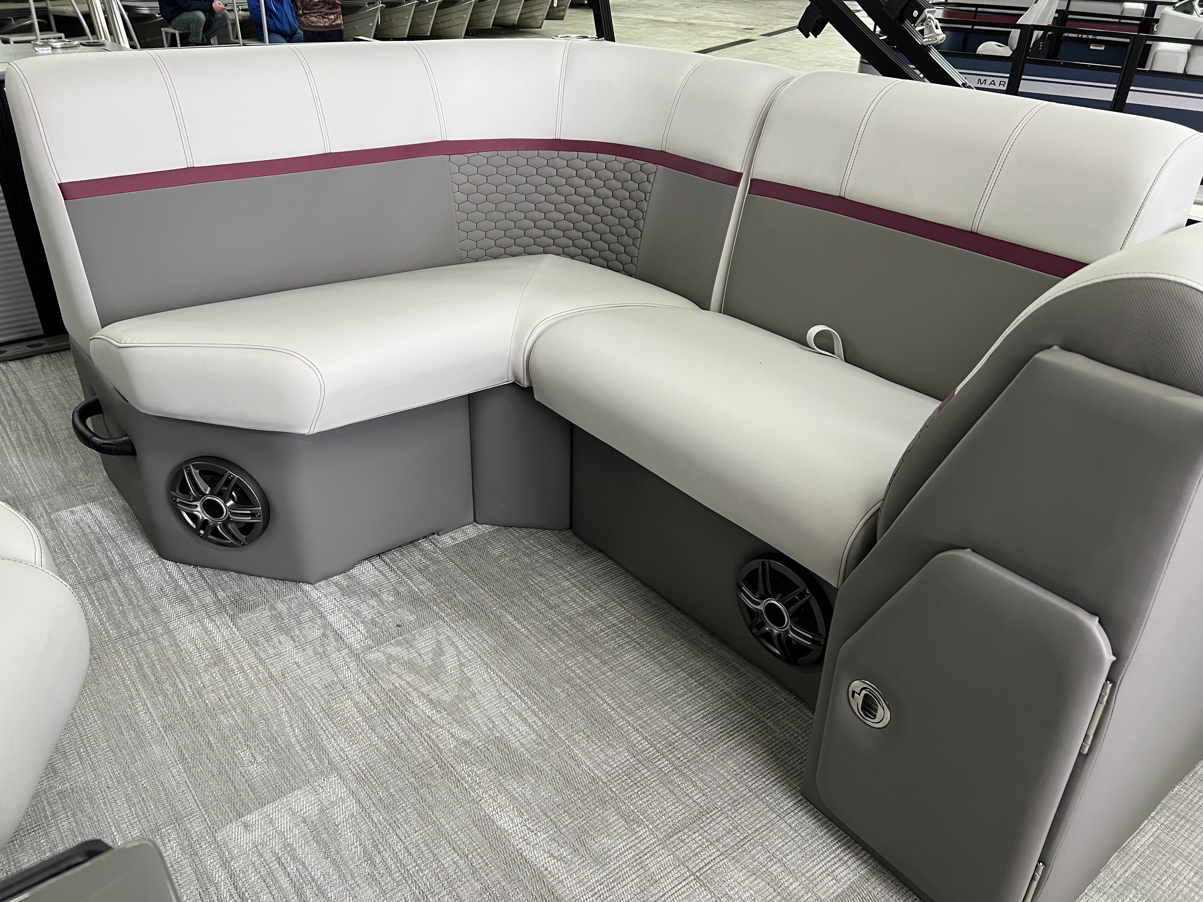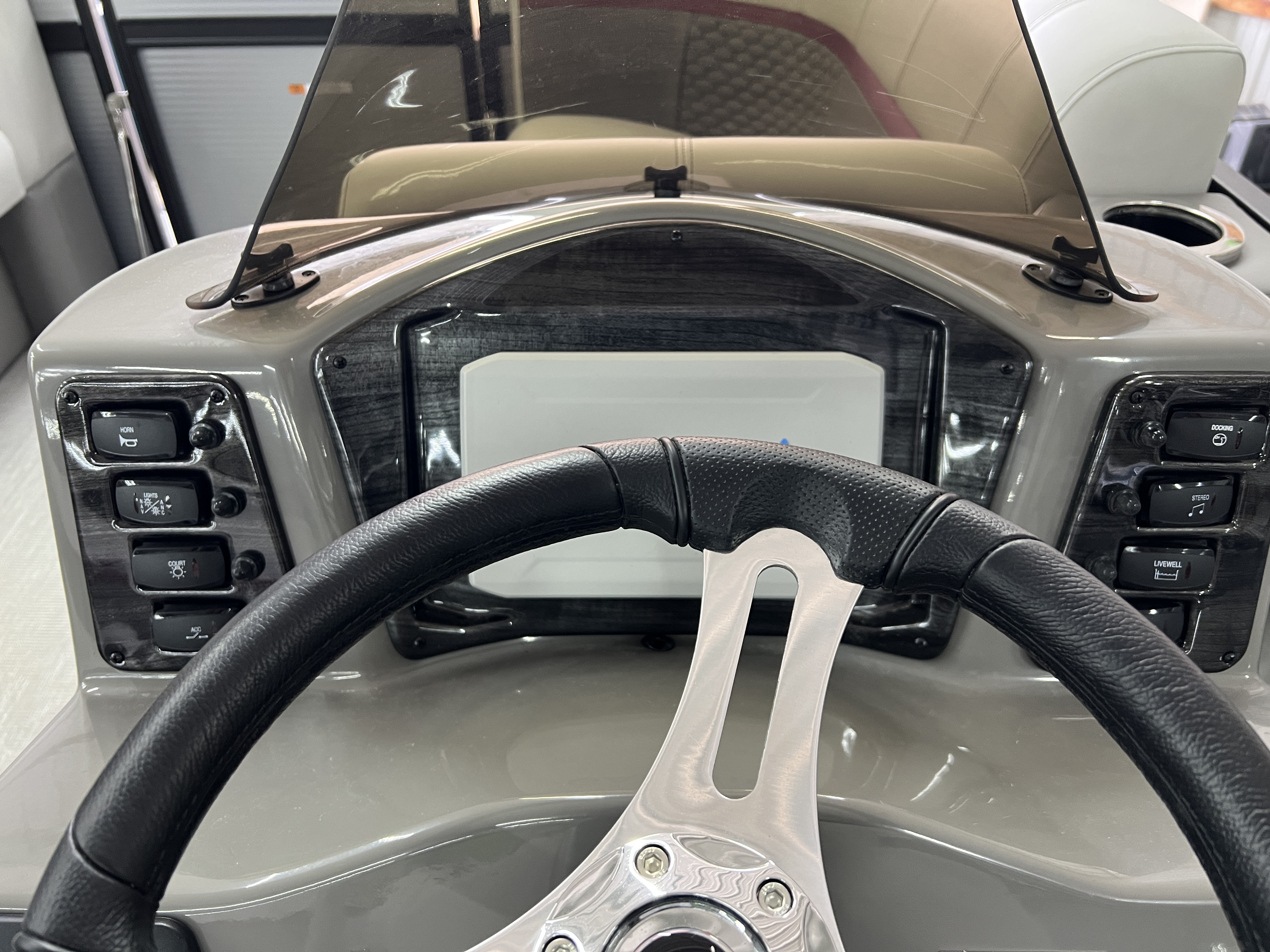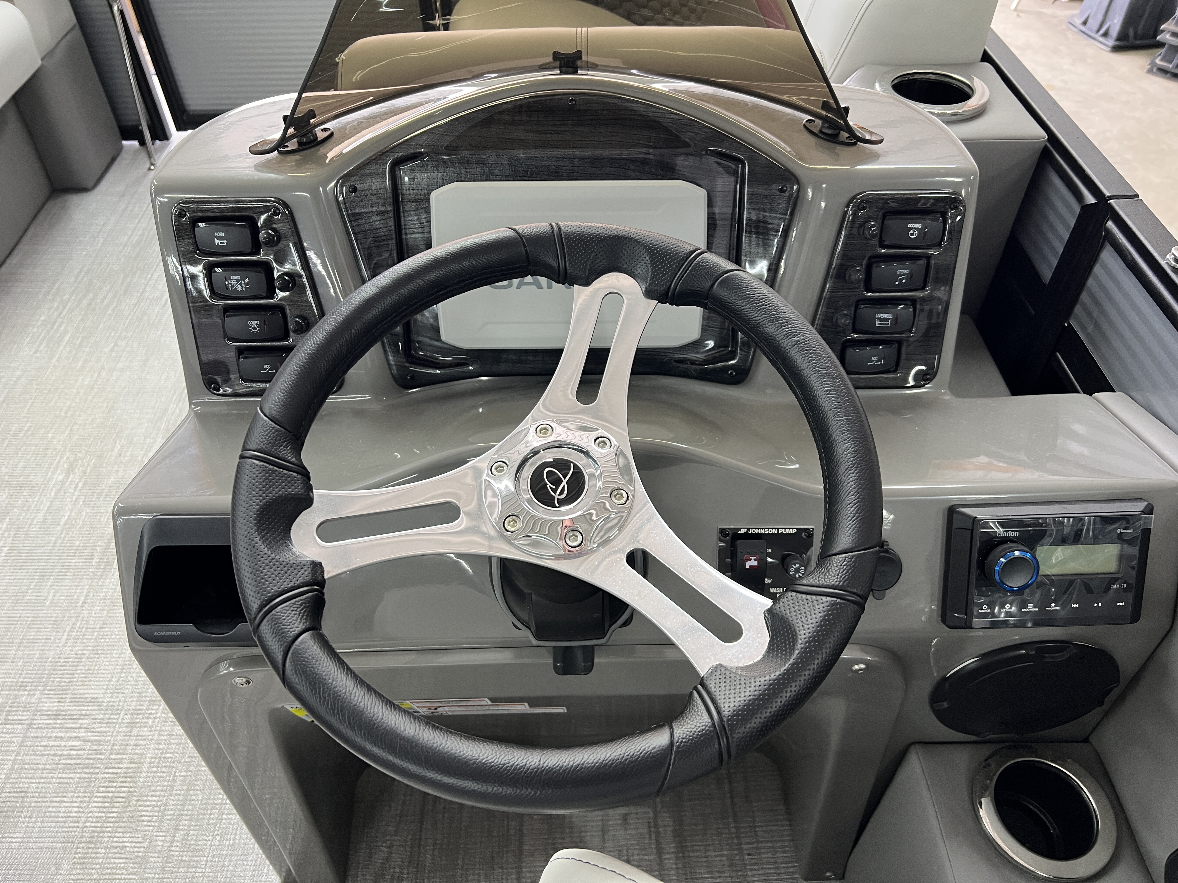 Options include: Qwest LTZ Package (High Back Captain Seat upgrade, Italian Steering Wheel, Tilt Steering, LED Docking Lights, S-Loop Cupholders, LED Lighted Cupholders, High-Presssure Washdown, SS Fold-Down Cleats, Top Wall Skin, Garmin 7" Echomap GPS MFD, Scanstrut Wireless Charger, 4 Premium Lighted Clarion Speakers),Ski Tow Bar, Vantage 5-Year Product Protection