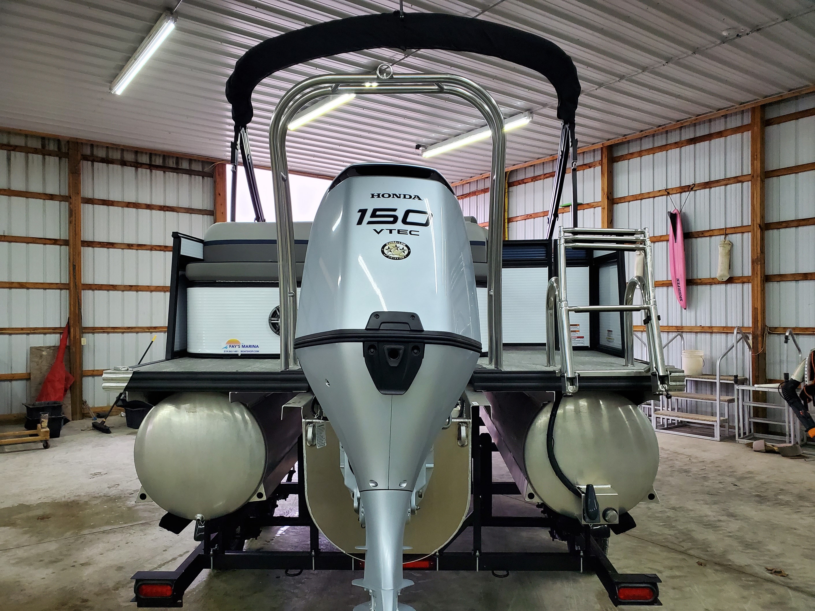 Immerse yourself in the experience of the new 2023 Qwest Pontoon 820 E-Series Lanai LTZ TT2 Tritoon with 150 Hp Honda Motor at Fay’s Marina in La Porte, Indiana.