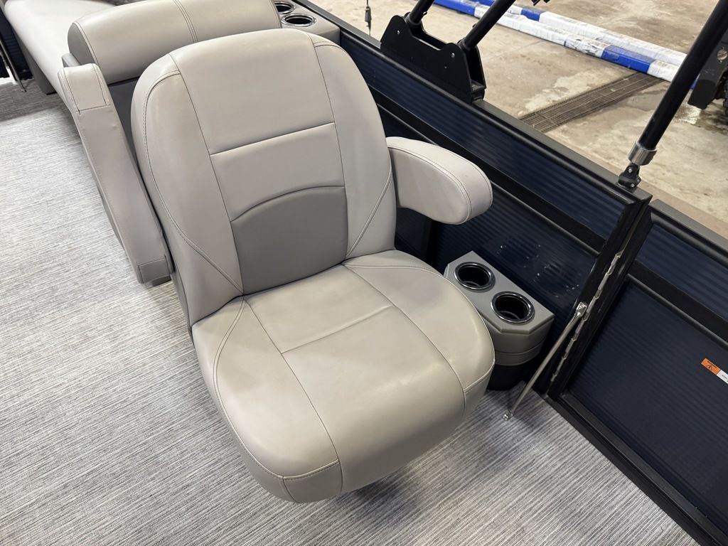 corner of the pontoon along with side-by-side captain's chairs in the middle.