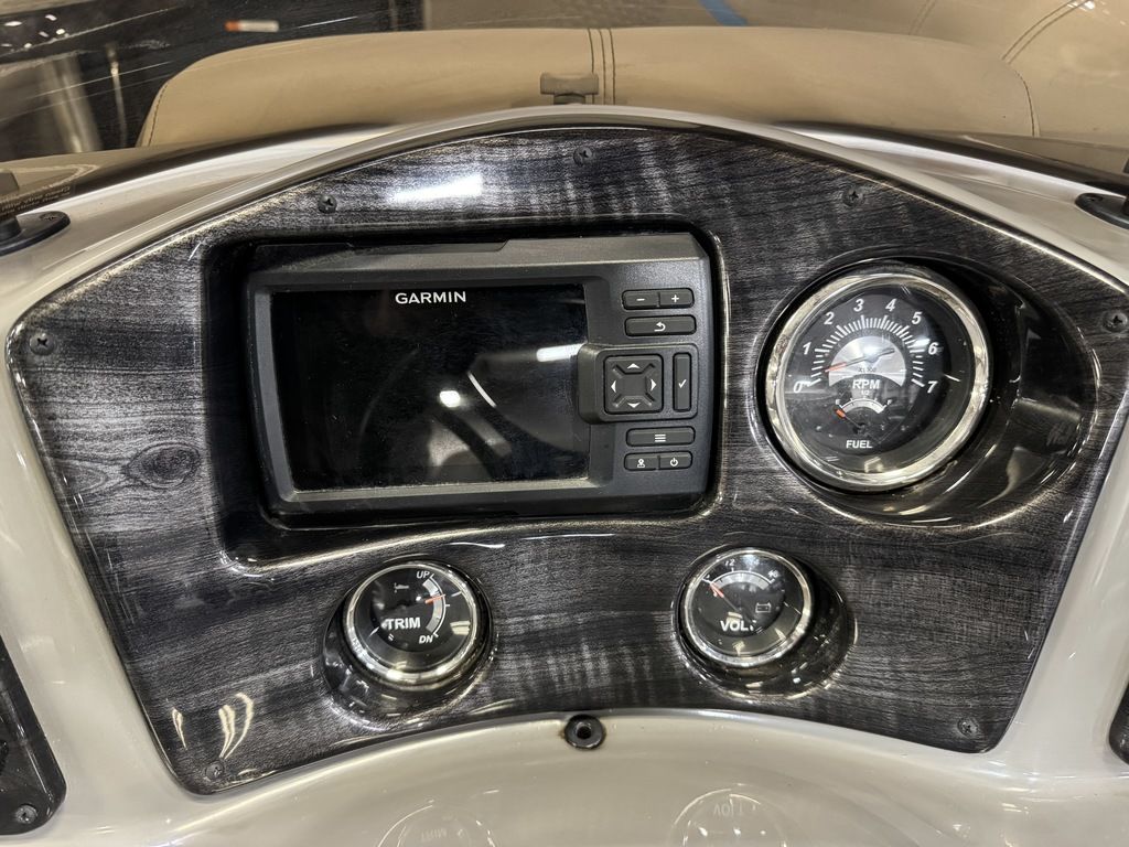 passenger side captain's chair. The helm features a Garmin GPS depth/fish finder