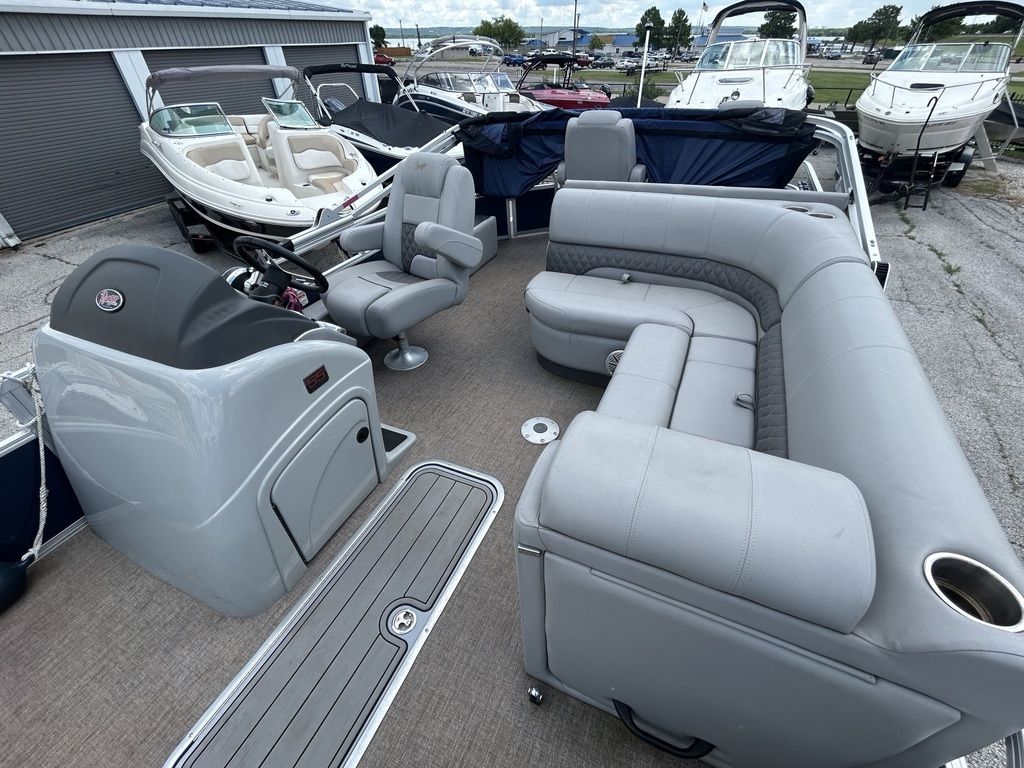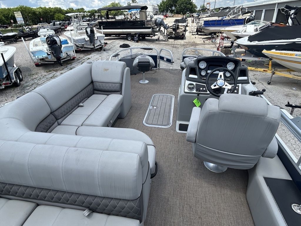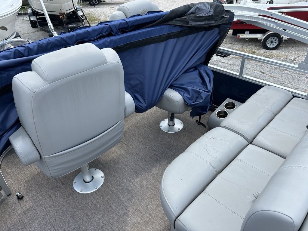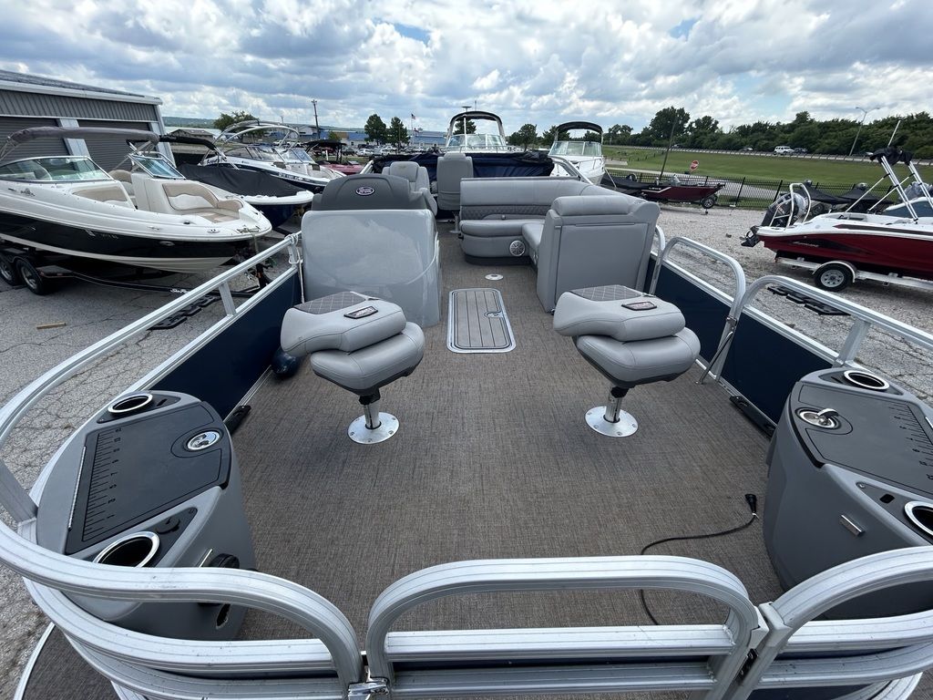 The largest Fish Series Ranger® Reata® pontoon is designed to get you in touch with fish as well as your family. A fish-and-play design and loads of storage let you go toe-to-fin with the species of your preference. A large L-lounge, color-matched Bimini top and supremely padded seats deliver incredible comfort when you’re out to catch some new memories. Fore and aft fishing stations feature rod holders and integrated tool and drink holders while a starboard rod locker holds sticks up to 7 feet, 6 inches in length. The 223 F delivers the space, features and comfort that will leave you looking for a reason to reel ’em in and chill out.