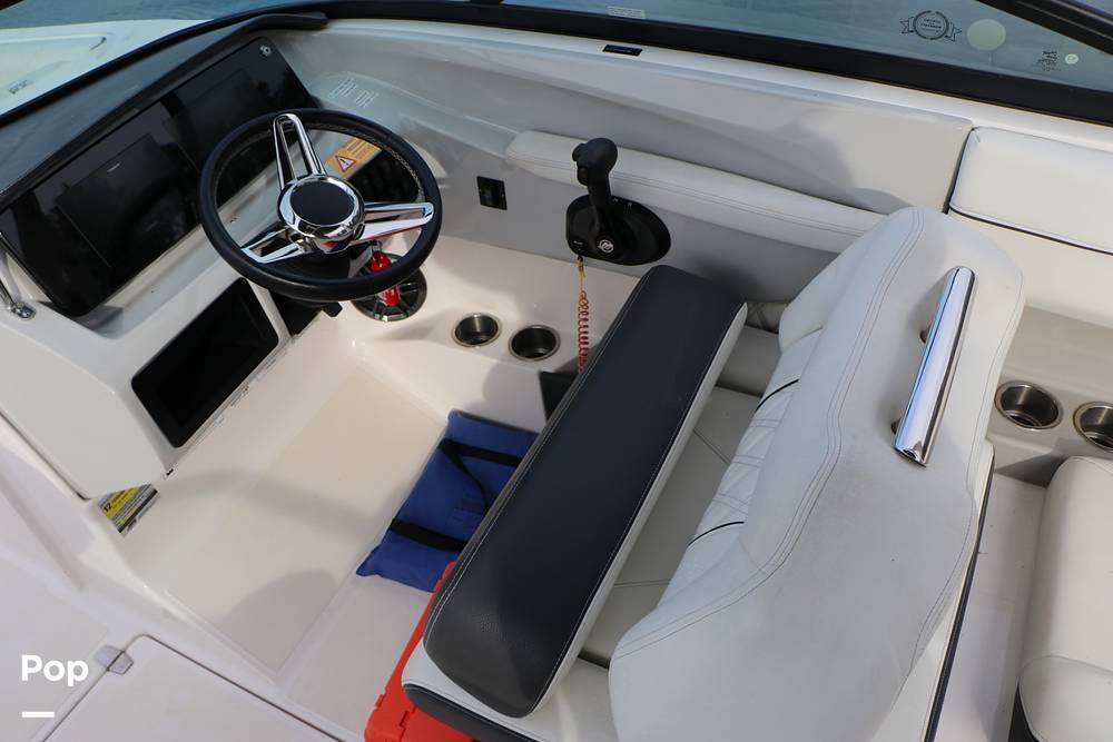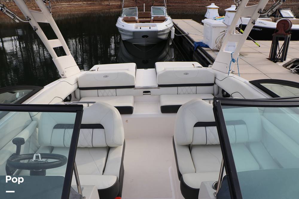 The flexible seating layout features reversible captain's chairs, transom seating ideal for watching the action behind the boat, and comfortable passenger lounges. Built-in coolers and a walkthrough windshield make it easy to keep refreshments close and access the bow with ease.