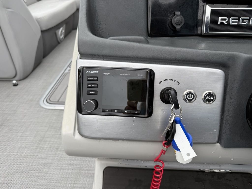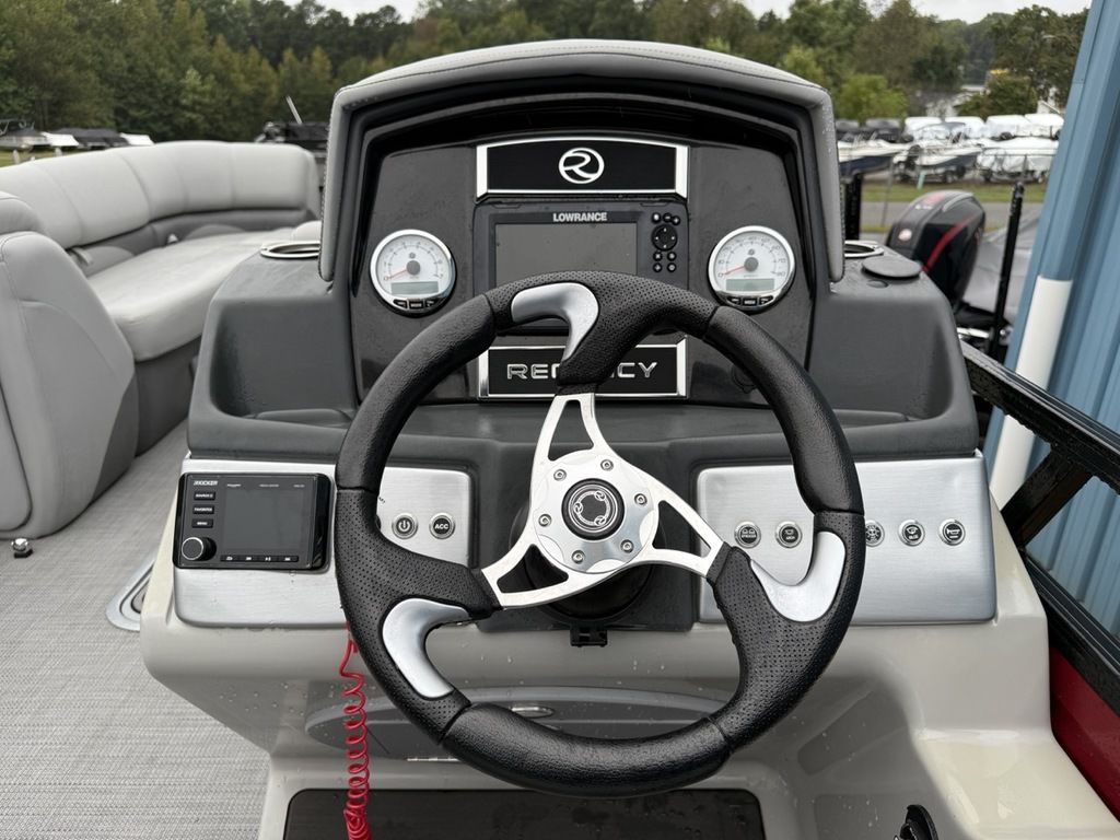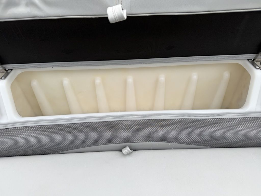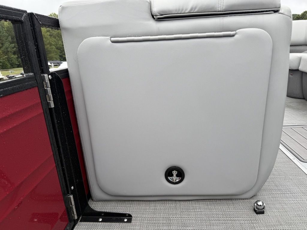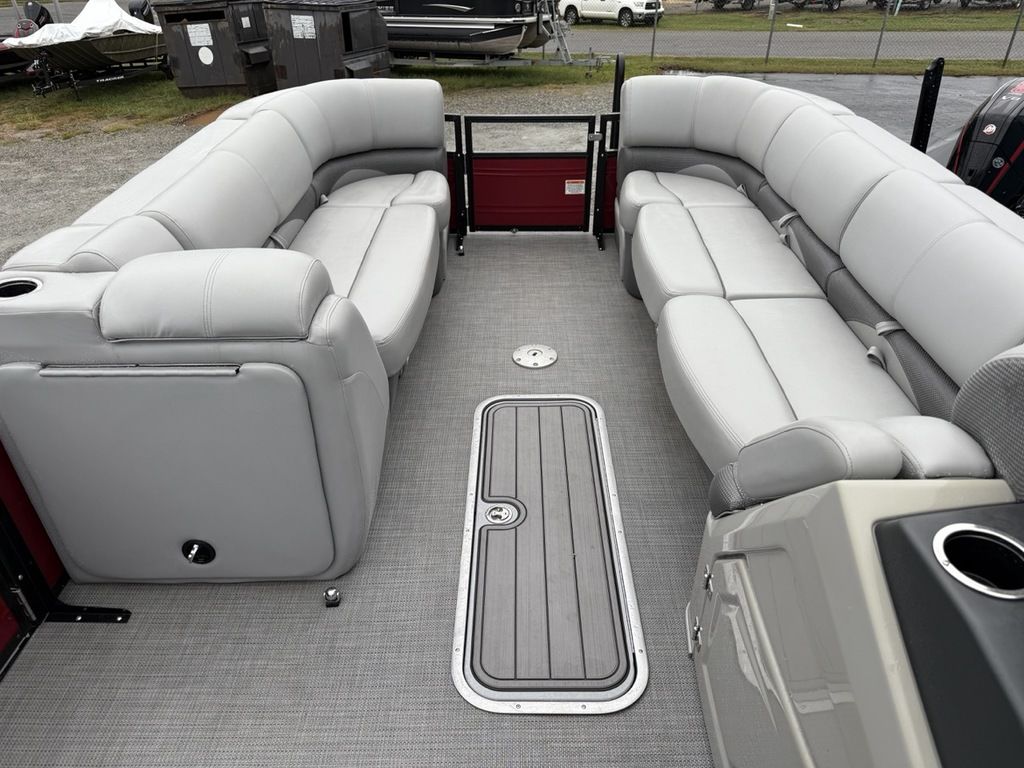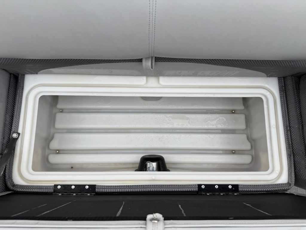 Inside, the DL3 offers an abundance of options for whiling the day away whether you take in the views from a pillowtop bow lounge or the roomy aft switch-back bed lounge. The ornate helm features LED-rimmed push-button switching, a Lowrance® depthfinder and Bluetooth® Kicker® stereo that powers four speakers. Cavernous underseat compartments complement the STOW MORE™ seatback storage and beneath the aft bed lounge is a pop-up changing enclosure for privacy. Bow to stern you’ll find blue tinted LEDs to set the mood after dark.