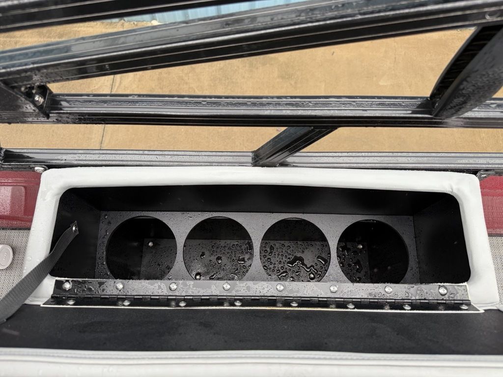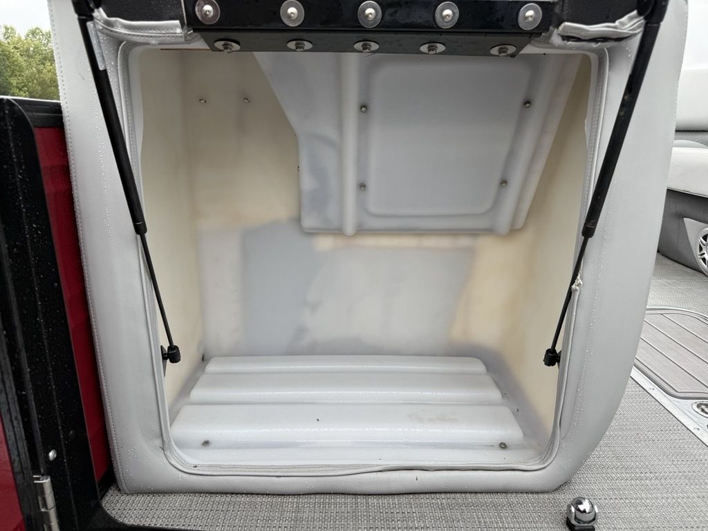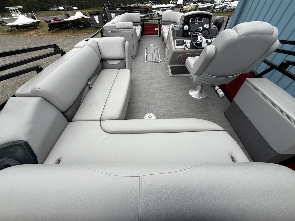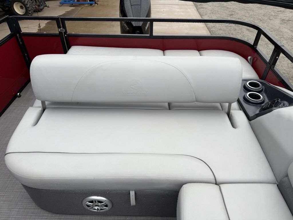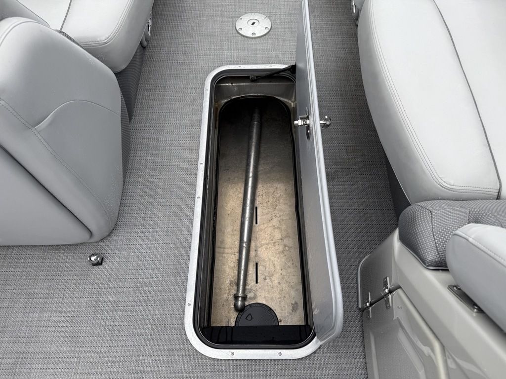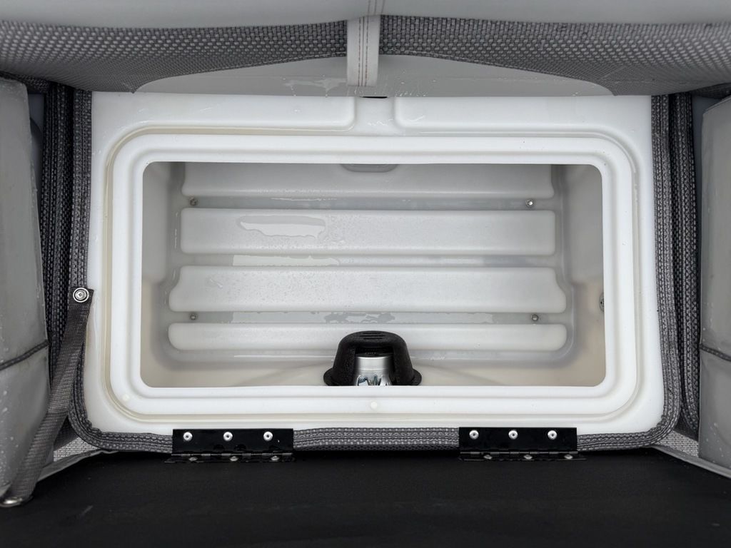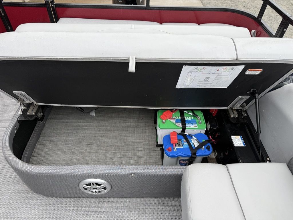 Inside, the DL3 offers an abundance of options for whiling the day away whether you take in the views from a pillowtop bow lounge or the roomy aft switch-back bed lounge. The ornate helm features LED-rimmed push-button switching, a Lowrance® depthfinder and Bluetooth® Kicker® stereo that powers four speakers. Cavernous underseat compartments complement the STOW MORE™ seatback storage and beneath the aft bed lounge is a pop-up changing enclosure for privacy. Bow to stern you’ll find blue tinted LEDs to set the mood after dark.