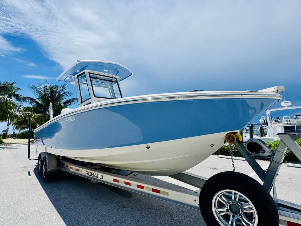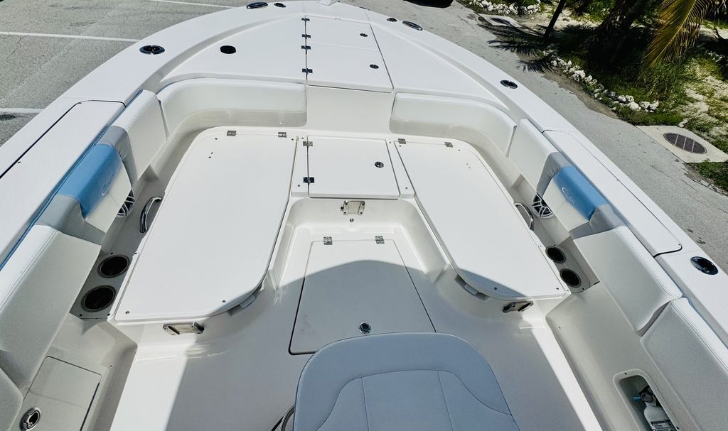 The 2023 Robalo 266 Cayman is the ultimate hybrid. With a deep-V hull, wide beam, and robust offshore capabilities, this bay boat delivers serious fishability without sacrificing comfort. Built with Robalo’s legendary attention to detail, it combines premium construction with refined finishes and intelligent design throughout. Whether you’re an avid angler or a weekend cruiser, the 266 Cayman brings performance, versatility, and luxury together in one bold package.