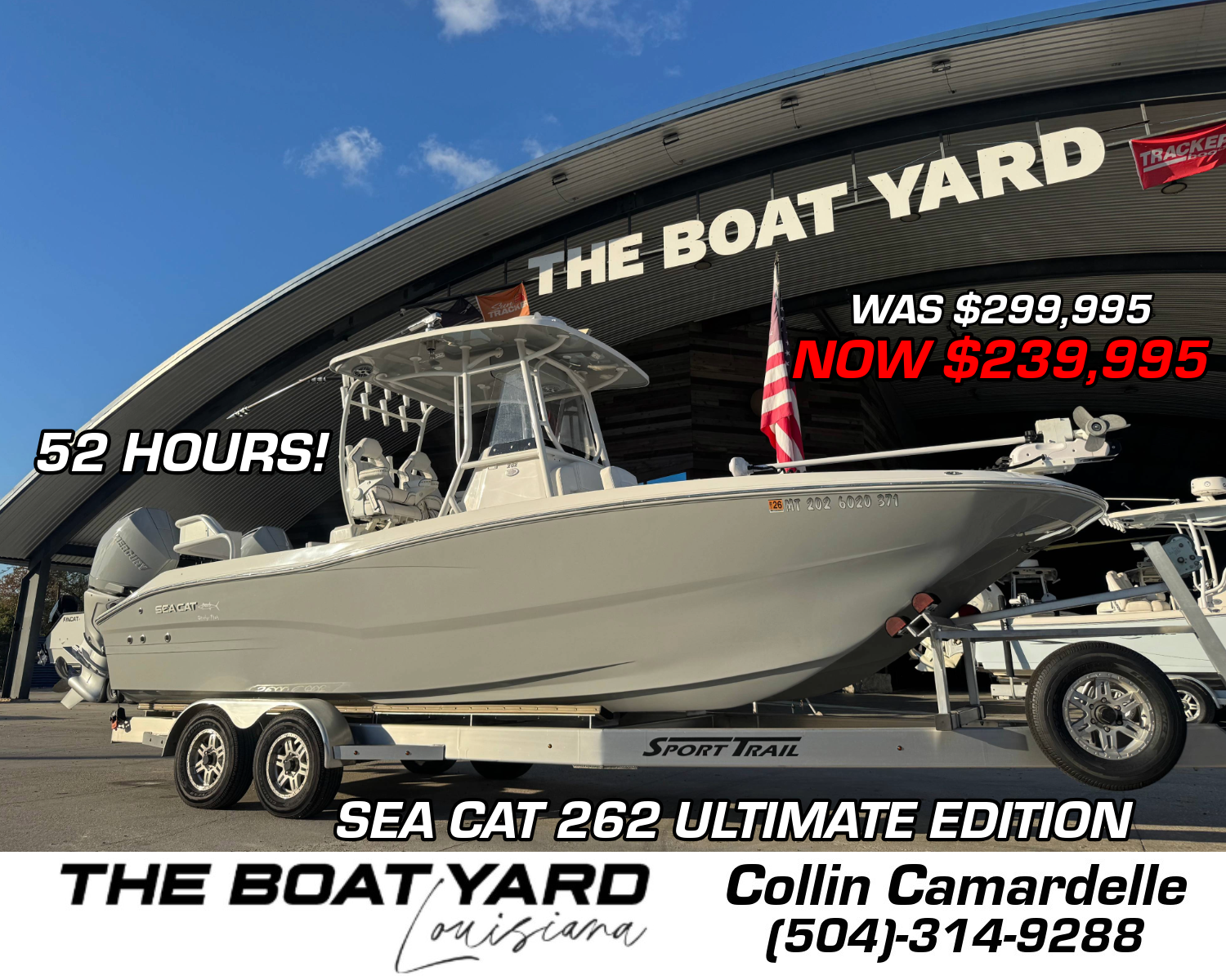Dive into the ultimate offshore/inshore adventure with the Sea Cat 262. This powerful catamaran offers unparalleled stability and speed, perfect for fishing enthusiasts and thrill-seekers alike. With its spacious deck and cutting-edge technology, the Sea Cat 262 ensures every expedition is smooth, safe, and unforgettable. Embark on your next maritime journey with confidence—experience the thrill of the Sea Cat 262 today.