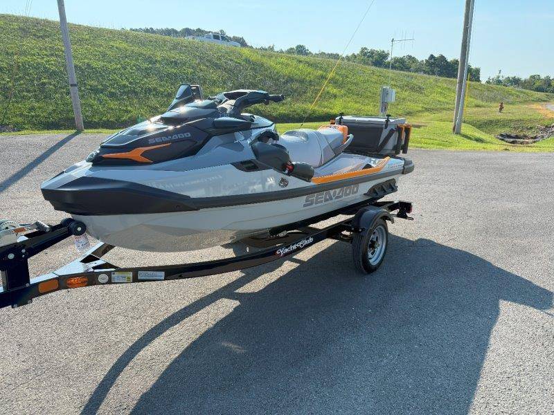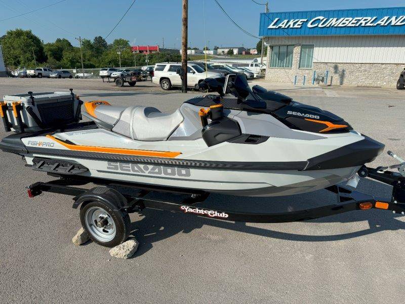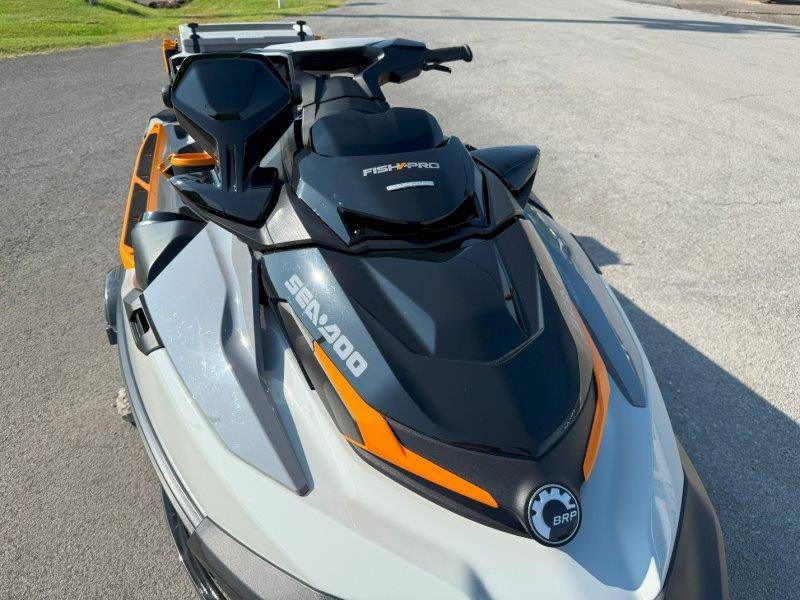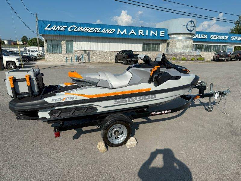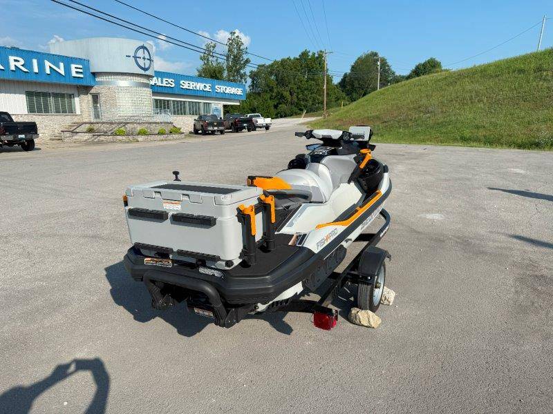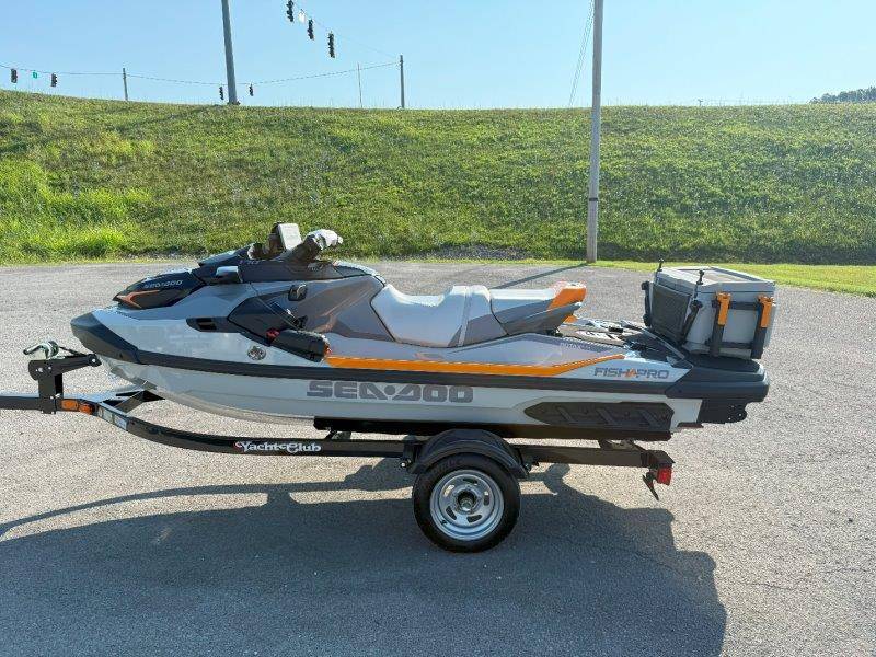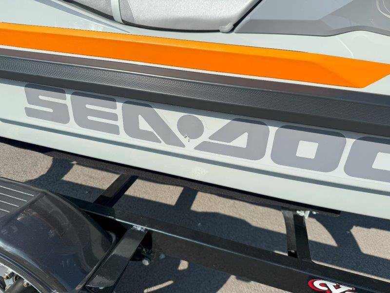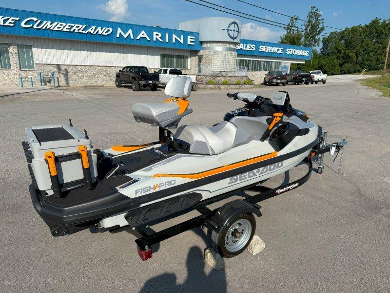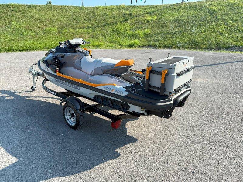 2023 Sea-Doo Fish Pro Trophy 170 iBR & iDF Garmin 7" Touchscreen & FishFinder Advanced Battery System Modular Swivel Seat Rear Deck w/ LinQ Quick-Connect Livewell Anchor System Tech Package Premium Audio 7.8" Full Color Screen USB Port Shark Gray & Orange Crush Color Low Hours Single-Axle Trailer Included