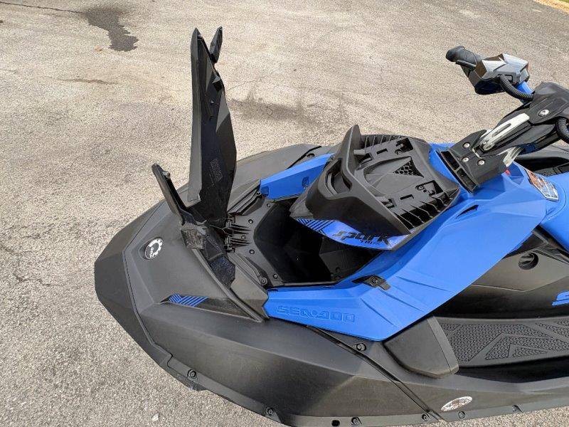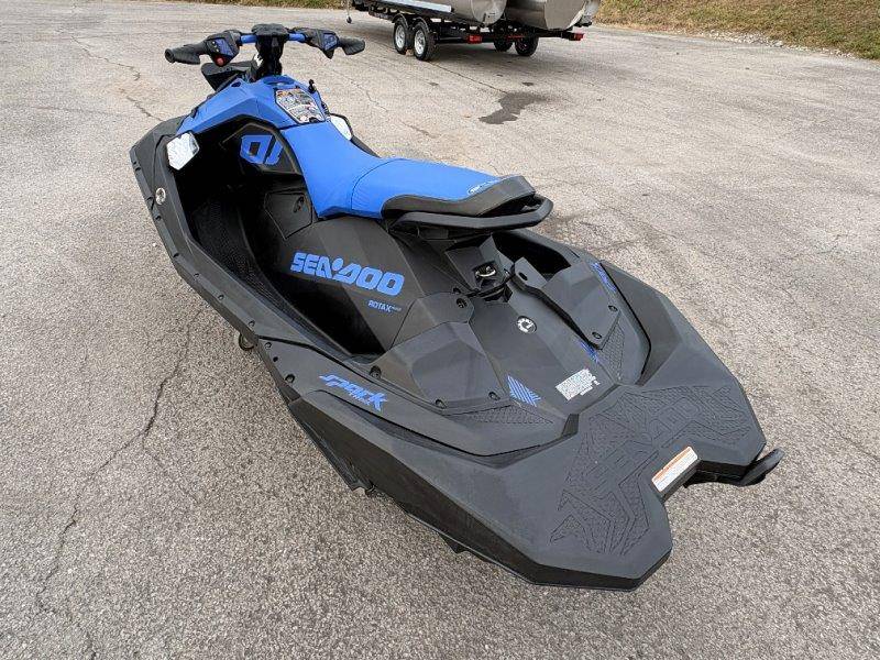2023 Sea-Doo Spark Trixx 3UP Engine: Rotax 900 ACE™ - 90 Horsepower: 90 hp Fuel Type: 87 Octane Throttle System: iTC™ (Intelligent Throttle Control) Cooling: Closed-Loop Cooling System (CLCS) Exhaust: D-Sea-BeI™ System Dimensions & Weight Length: 120 in. (305 cm) Width: 46.4 in. (118 cm) Height: 42.1 in. (107 cm) Dry Weight: 439 lb (199 kg) Capacity Rider Capacity: 3 Persons Weight Capacity: 450 lb (205 kg) Fuel Capacity: 7.9 US gal (30 L) Glove Box Storage: 0.42 US gal (1.6 L) Front Bin (Optional): 7 US gal (27 L)