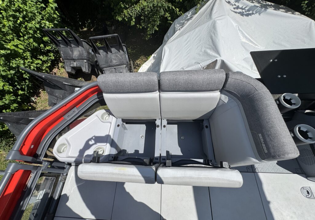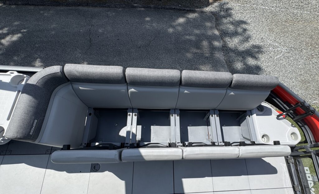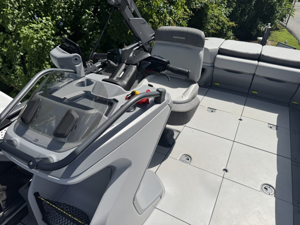 Plus, Sea-Doo-branded equipment including anchor, emergency kit with a fire extinguisher and more, snap-on docking bumpers, clip-on cupholders, rearview mirror, add-on full-size battery box and wires with battery selection switch, and more!