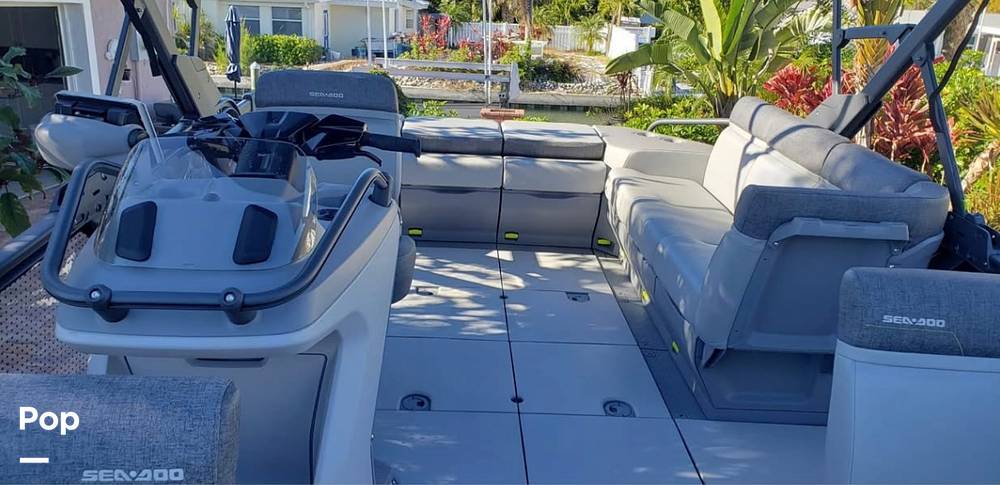 This 2023 Sea-Doo Switch Cruise 21 is ready for some fun in the Sun! This Sea-Doo Switch 21 combines the spacious layout of a pontoon boat, the stability of a deck and the handling of a jet boat. She has plenty of power. The boat comes equipped with a Rotax 230 HP jet boat engine with only 7 hours of use!