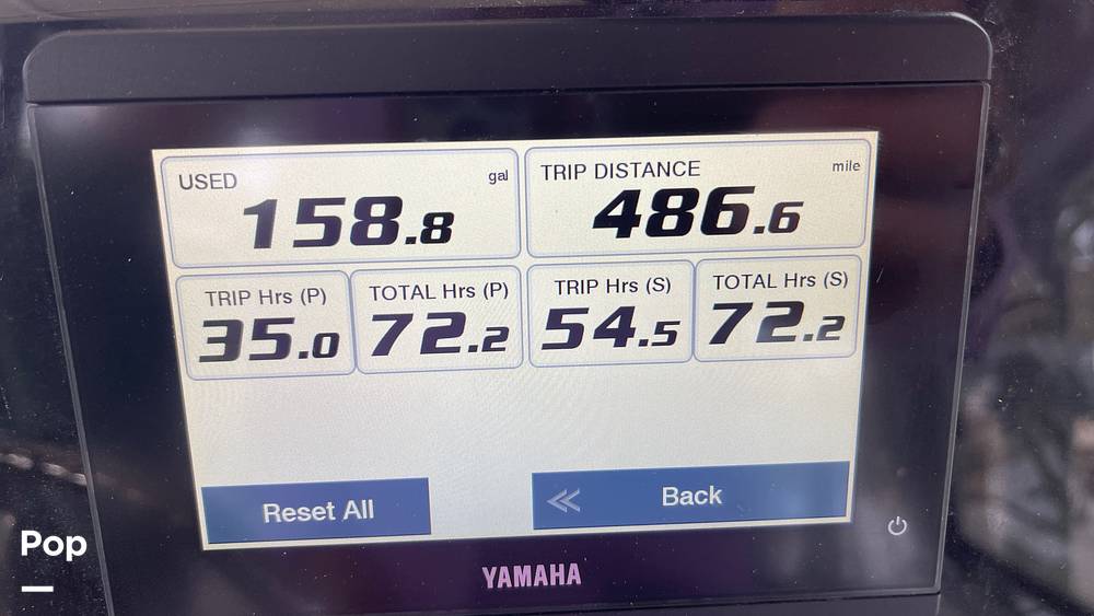 Powered by low-hour twin Yamaha 200 HP Four-Stroke outboards (only about 75 hours total), these engines run efficiently, pushing the boat to speeds around 50 MPH while offering excellent fuel economy with the 127-gallon tank for extended range.