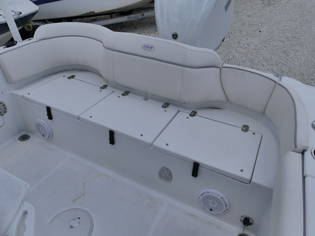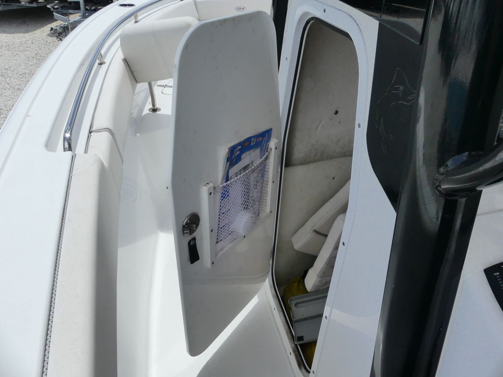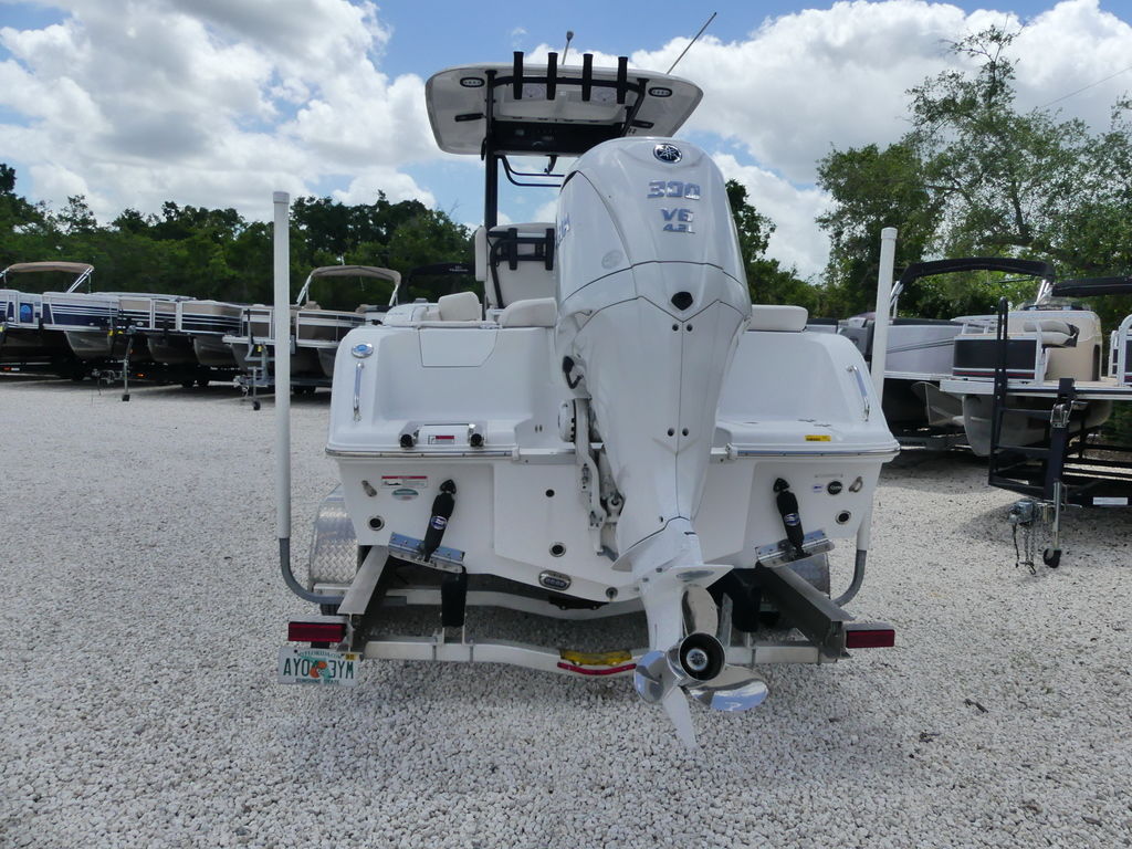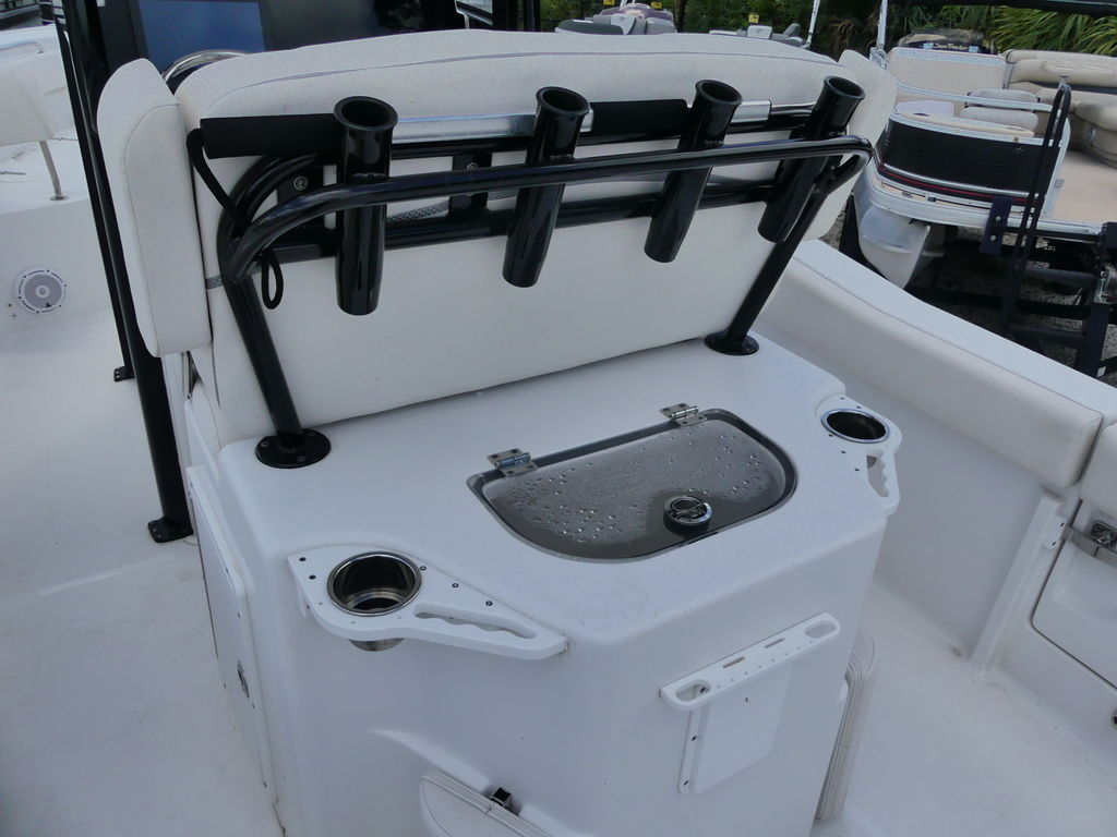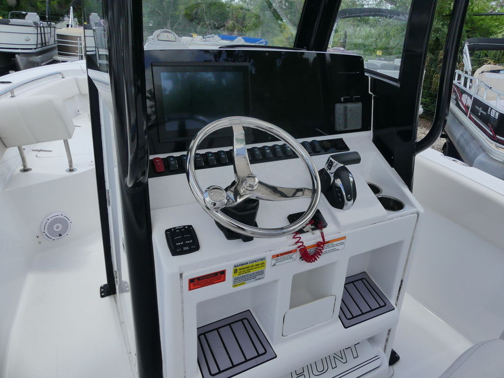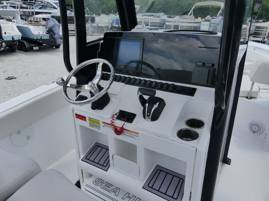 The Sea Hunt Ultra 239 SE is loaded with premium features designed for both performance fishing and family comfort. It includes a spacious center console with room for a head and additional storage, a durable T-top for shade and protection, and a well-equipped helm with modern electronics for navigation and fish finding. Fishing enthusiasts will enjoy the integrated livewell, multiple rod holders, insulated fish boxes, and ample deck space for casting. For family-friendly comfort, the boat offers cushioned bow seating with backrests, a fold-down transom bench, and a swim platform with ladder for easy water access. Additional highlights include a freshwater washdown system, abundant storage compartments, cup holders throughout, and a high-quality sound system to keep everyone entertained.