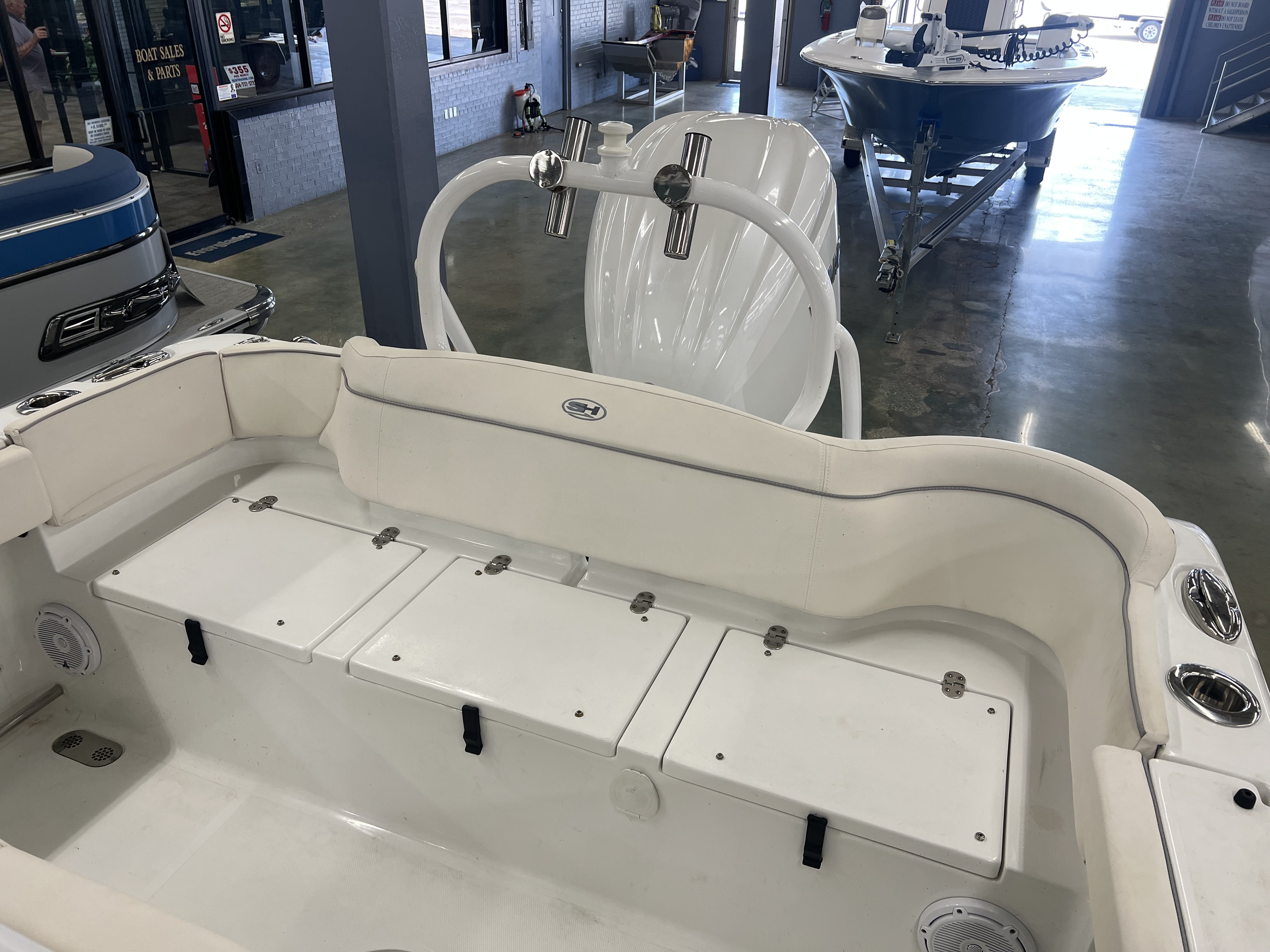 This 2023 Sea Hunt Ultra 255 SE is being offered for sale with the custom aluminum trailer shown. This boat is powered with a factory white painted 300 hp Yamaha four stroke with only 131 hours! This boat is loaded with features like Garmin 12" chart plotter and sonar system, as well as VHF radio. This boat has a factory JL audio sound system with 6 speakers. It is also equipped with a windlass anchor on the bow and ski tow bar as well as under water lights. All the cushions are in great shape and the boat shows really well. Give us a call at 504-737-2722 or come stop by our Metairie showroom to take a look at this one before it is gone. Financing is available.