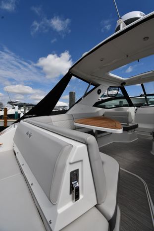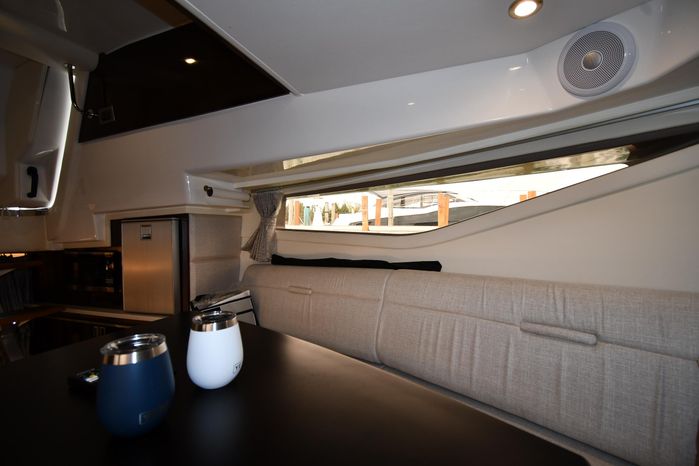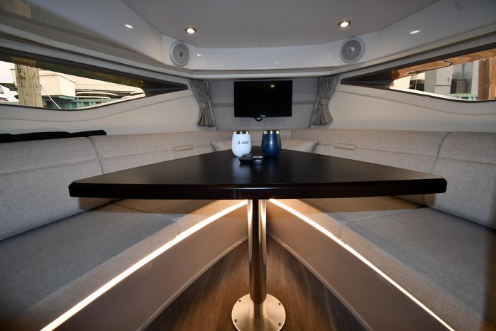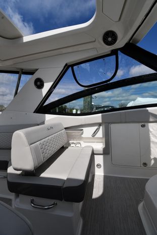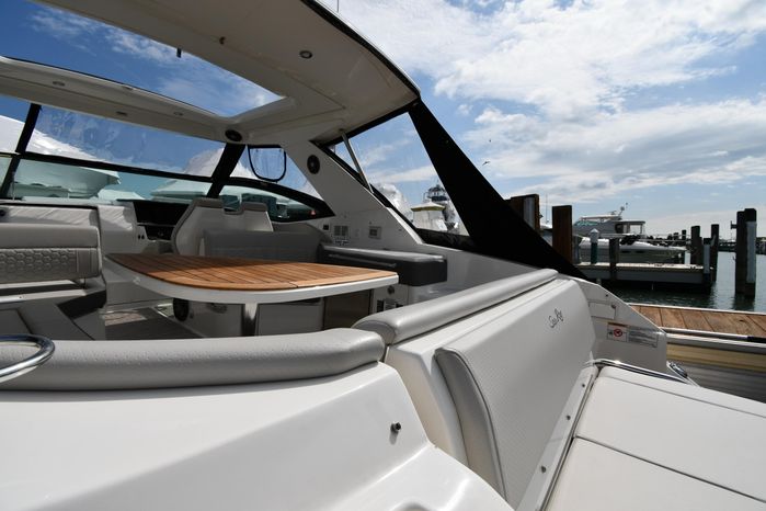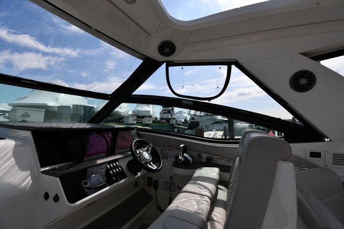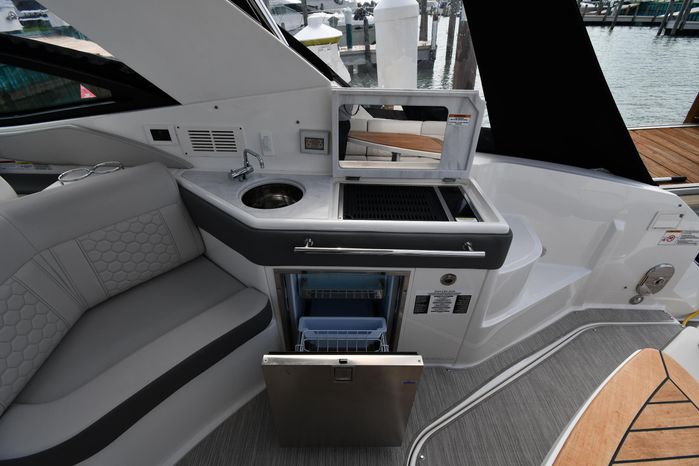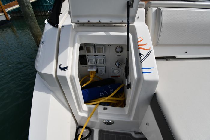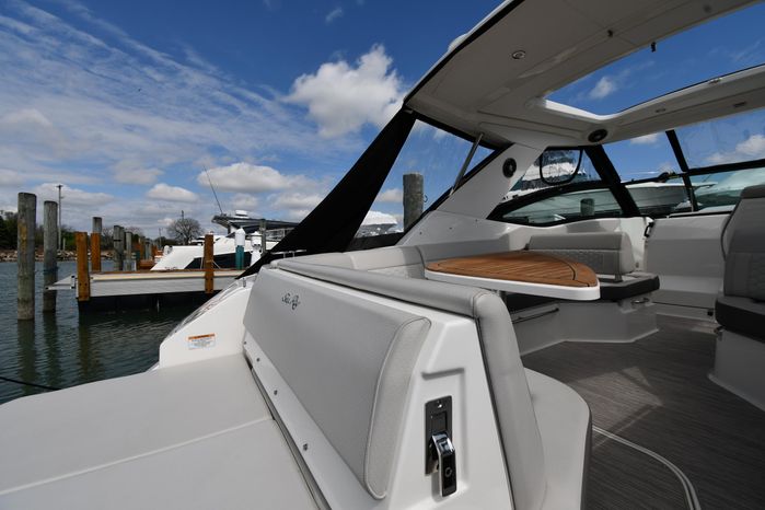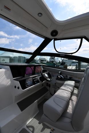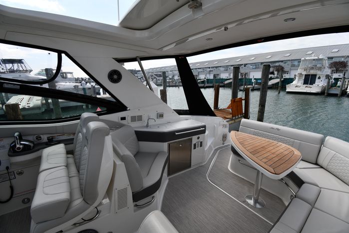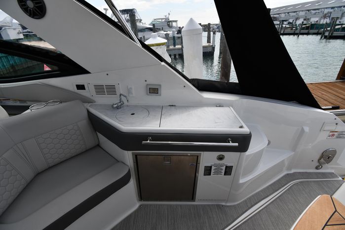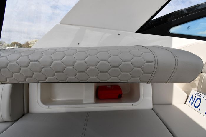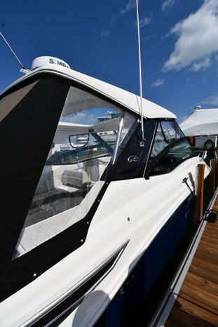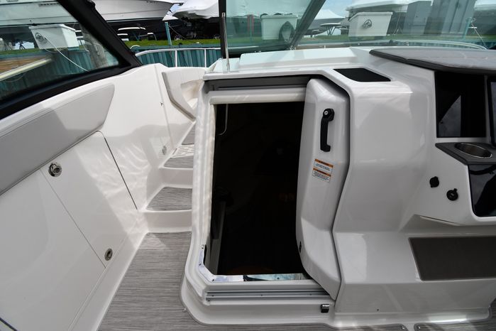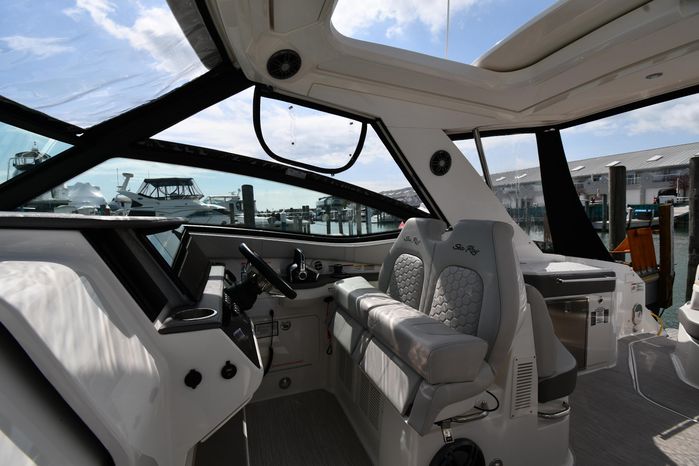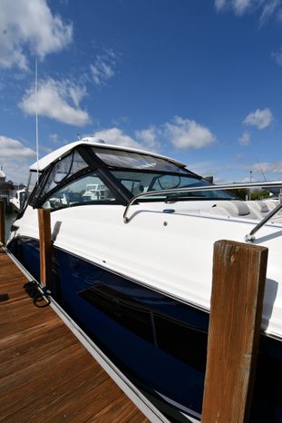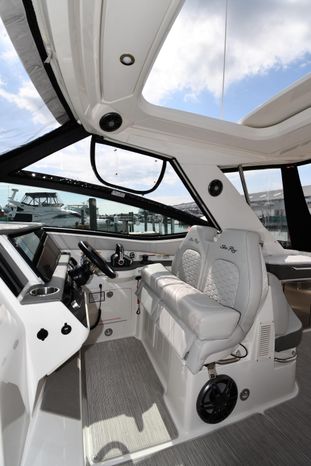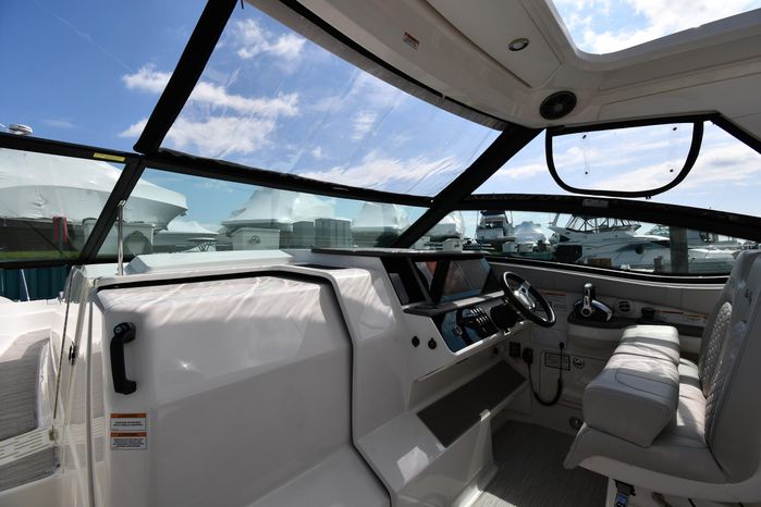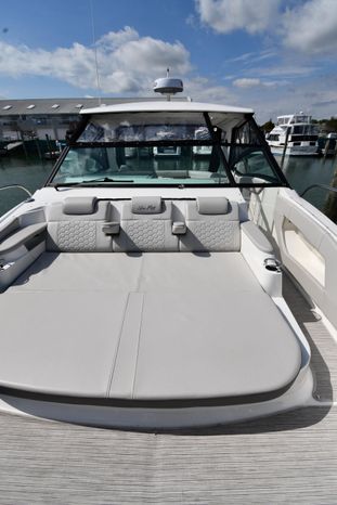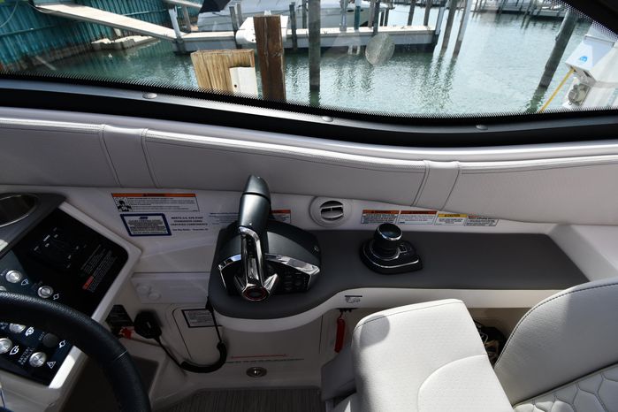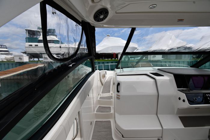 Broker Notes: Striking Blue Hull-Sides, Manual Sun-Roof, Docking Lights, Cockpit AC/Heat, Canvas Package (Cockpit / Bow Mooring Covers / Full Cockpit-Enclosure), Transom Sun-Pad. Warranty - Engine's until May 9, 2028 and boat until May 6, 2026! Highly Recommended by Listing Agent!