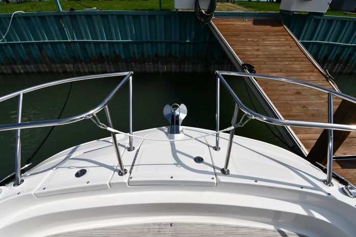 Freshwater / Great Lakes boat since new this vessel features Twin MerCruiser 6.2-litre 300-hp Gas Engine's with Bravo III Sterndrives and Axius Joy-Stick Piloting - Note only 129 original hours. Notable features include but are not limited to the following: Air-Conditioning & Heat (Cockpit / Cabin), Head (Vacuflush) w/Vanity/Sink/Shower, Cockpit Wet-Bar w/Sink/Drawer-Style Stainless-Steel Refrigerator/Kenyon Electric BBQ-Grill, Westerbeke Generator, Windlass-Anchor w/Remote Control - Note Polished Stainless-Steel Anchor, Dual Simrad Color / TouchScreen Display's w/Engine Interface/Radar/GPS/Chartplotter, Premium Fusion Sound System w/Zoned JL-Audio Speakers, Hydraulic Swim-Step, and MUCH more!