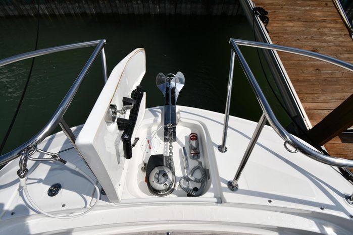 Freshwater / Great Lakes boat since new this vessel features Twin MerCruiser 6.2-litre 300-hp Gas Engine's with Bravo III Sterndrives and Axius Joy-Stick Piloting - Note only 129 original hours. Notable features include but are not limited to the following: Air-Conditioning & Heat (Cockpit / Cabin), Head (Vacuflush) w/Vanity/Sink/Shower, Cockpit Wet-Bar w/Sink/Drawer-Style Stainless-Steel Refrigerator/Kenyon Electric BBQ-Grill, Westerbeke Generator, Windlass-Anchor w/Remote Control - Note Polished Stainless-Steel Anchor, Dual Simrad Color / TouchScreen Display's w/Engine Interface/Radar/GPS/Chartplotter, Premium Fusion Sound System w/Zoned JL-Audio Speakers, Hydraulic Swim-Step, and MUCH more!