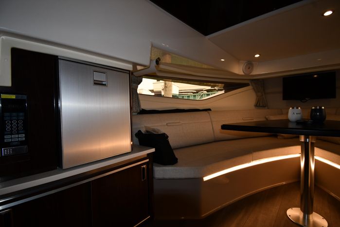 Freshwater / Great Lakes boat since new this vessel features Twin MerCruiser 6.2-litre 300-hp Gas Engine's with Bravo III Sterndrives and Axius Joy-Stick Piloting - Note only 129 original hours. Notable features include but are not limited to the following: Air-Conditioning & Heat (Cockpit / Cabin), Head (Vacuflush) w/Vanity/Sink/Shower, Cockpit Wet-Bar w/Sink/Drawer-Style Stainless-Steel Refrigerator/Kenyon Electric BBQ-Grill, Westerbeke Generator, Windlass-Anchor w/Remote Control - Note Polished Stainless-Steel Anchor, Dual Simrad Color / TouchScreen Display's w/Engine Interface/Radar/GPS/Chartplotter, Premium Fusion Sound System w/Zoned JL-Audio Speakers, Hydraulic Swim-Step, and MUCH more!