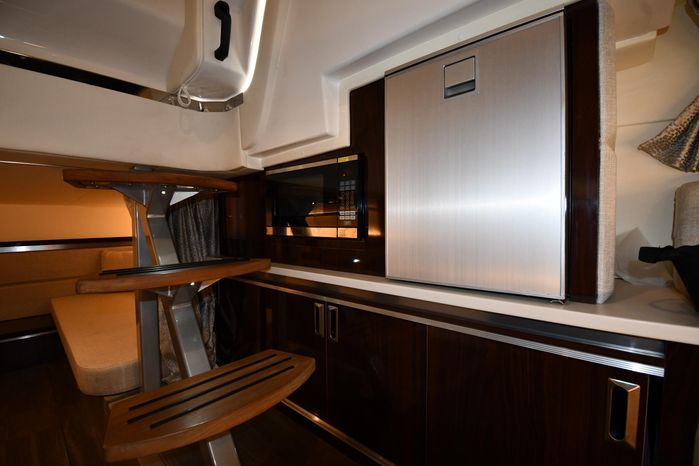 Freshwater / Great Lakes boat since new this vessel features Twin MerCruiser 6.2-litre 300-hp Gas Engine's with Bravo III Sterndrives and Axius Joy-Stick Piloting - Note only 129 original hours. Notable features include but are not limited to the following: Air-Conditioning & Heat (Cockpit / Cabin), Head (Vacuflush) w/Vanity/Sink/Shower, Cockpit Wet-Bar w/Sink/Drawer-Style Stainless-Steel Refrigerator/Kenyon Electric BBQ-Grill, Westerbeke Generator, Windlass-Anchor w/Remote Control - Note Polished Stainless-Steel Anchor, Dual Simrad Color / TouchScreen Display's w/Engine Interface/Radar/GPS/Chartplotter, Premium Fusion Sound System w/Zoned JL-Audio Speakers, Hydraulic Swim-Step, and MUCH more!