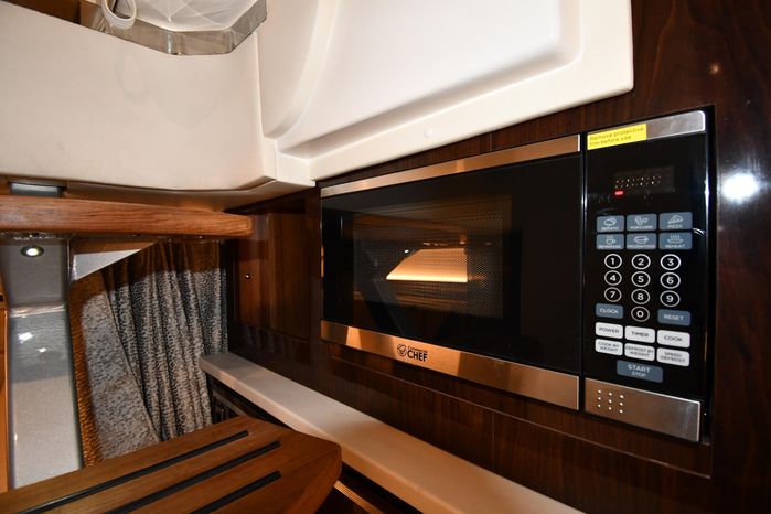 Freshwater / Great Lakes boat since new this vessel features Twin MerCruiser 6.2-litre 300-hp Gas Engine's with Bravo III Sterndrives and Axius Joy-Stick Piloting - Note only 129 original hours. Notable features include but are not limited to the following: Air-Conditioning & Heat (Cockpit / Cabin), Head (Vacuflush) w/Vanity/Sink/Shower, Cockpit Wet-Bar w/Sink/Drawer-Style Stainless-Steel Refrigerator/Kenyon Electric BBQ-Grill, Westerbeke Generator, Windlass-Anchor w/Remote Control - Note Polished Stainless-Steel Anchor, Dual Simrad Color / TouchScreen Display's w/Engine Interface/Radar/GPS/Chartplotter, Premium Fusion Sound System w/Zoned JL-Audio Speakers, Hydraulic Swim-Step, and MUCH more!