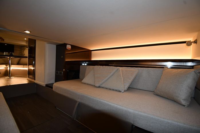 Freshwater / Great Lakes boat since new this vessel features Twin MerCruiser 6.2-litre 300-hp Gas Engine's with Bravo III Sterndrives and Axius Joy-Stick Piloting - Note only 129 original hours. Notable features include but are not limited to the following: Air-Conditioning & Heat (Cockpit / Cabin), Head (Vacuflush) w/Vanity/Sink/Shower, Cockpit Wet-Bar w/Sink/Drawer-Style Stainless-Steel Refrigerator/Kenyon Electric BBQ-Grill, Westerbeke Generator, Windlass-Anchor w/Remote Control - Note Polished Stainless-Steel Anchor, Dual Simrad Color / TouchScreen Display's w/Engine Interface/Radar/GPS/Chartplotter, Premium Fusion Sound System w/Zoned JL-Audio Speakers, Hydraulic Swim-Step, and MUCH more!