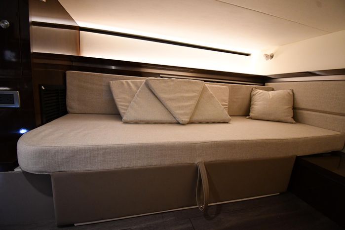 Freshwater / Great Lakes boat since new this vessel features Twin MerCruiser 6.2-litre 300-hp Gas Engine's with Bravo III Sterndrives and Axius Joy-Stick Piloting - Note only 129 original hours. Notable features include but are not limited to the following: Air-Conditioning & Heat (Cockpit / Cabin), Head (Vacuflush) w/Vanity/Sink/Shower, Cockpit Wet-Bar w/Sink/Drawer-Style Stainless-Steel Refrigerator/Kenyon Electric BBQ-Grill, Westerbeke Generator, Windlass-Anchor w/Remote Control - Note Polished Stainless-Steel Anchor, Dual Simrad Color / TouchScreen Display's w/Engine Interface/Radar/GPS/Chartplotter, Premium Fusion Sound System w/Zoned JL-Audio Speakers, Hydraulic Swim-Step, and MUCH more!