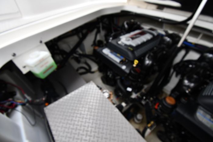 Freshwater / Great Lakes boat since new this vessel features Twin MerCruiser 6.2-litre 300-hp Gas Engine's with Bravo III Sterndrives and Axius Joy-Stick Piloting - Note only 129 original hours. Notable features include but are not limited to the following: Air-Conditioning & Heat (Cockpit / Cabin), Head (Vacuflush) w/Vanity/Sink/Shower, Cockpit Wet-Bar w/Sink/Drawer-Style Stainless-Steel Refrigerator/Kenyon Electric BBQ-Grill, Westerbeke Generator, Windlass-Anchor w/Remote Control - Note Polished Stainless-Steel Anchor, Dual Simrad Color / TouchScreen Display's w/Engine Interface/Radar/GPS/Chartplotter, Premium Fusion Sound System w/Zoned JL-Audio Speakers, Hydraulic Swim-Step, and MUCH more!