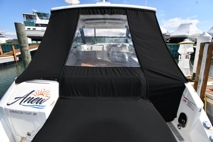 Freshwater / Great Lakes boat since new this vessel features Twin MerCruiser 6.2-litre 300-hp Gas Engine's with Bravo III Sterndrives and Axius Joy-Stick Piloting - Note only 129 original hours. Notable features include but are not limited to the following: Air-Conditioning & Heat (Cockpit / Cabin), Head (Vacuflush) w/Vanity/Sink/Shower, Cockpit Wet-Bar w/Sink/Drawer-Style Stainless-Steel Refrigerator/Kenyon Electric BBQ-Grill, Westerbeke Generator, Windlass-Anchor w/Remote Control - Note Polished Stainless-Steel Anchor, Dual Simrad Color / TouchScreen Display's w/Engine Interface/Radar/GPS/Chartplotter, Premium Fusion Sound System w/Zoned JL-Audio Speakers, Hydraulic Swim-Step, and MUCH more!