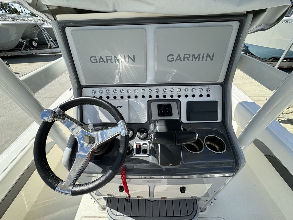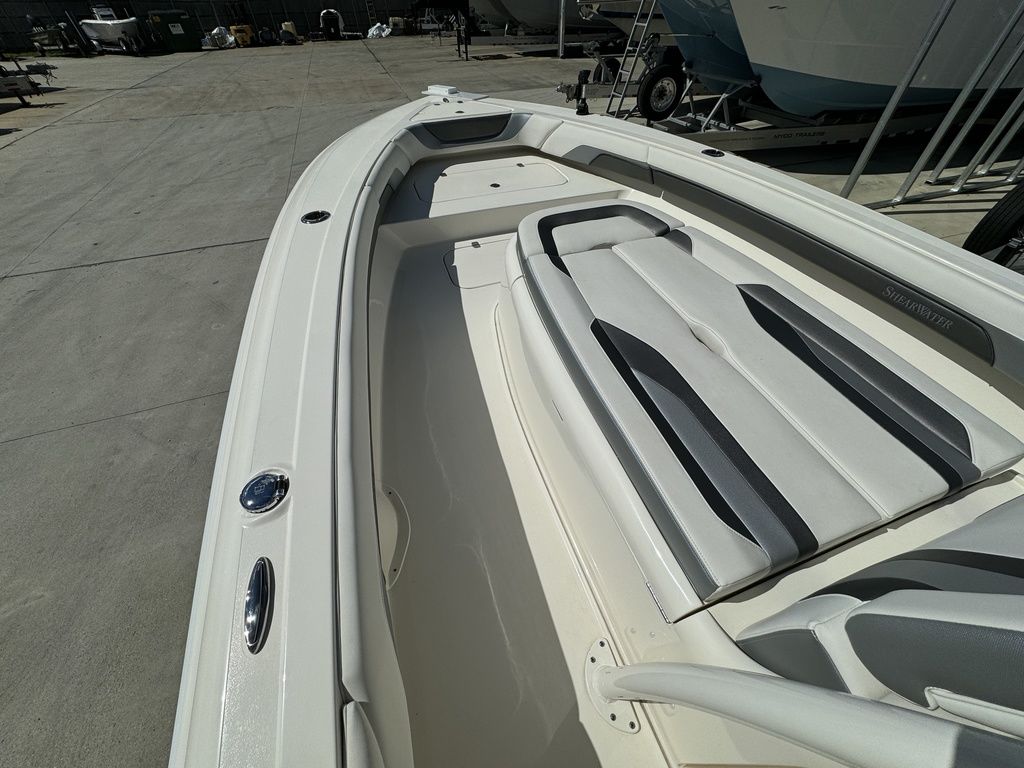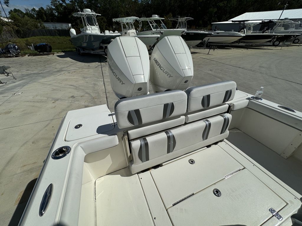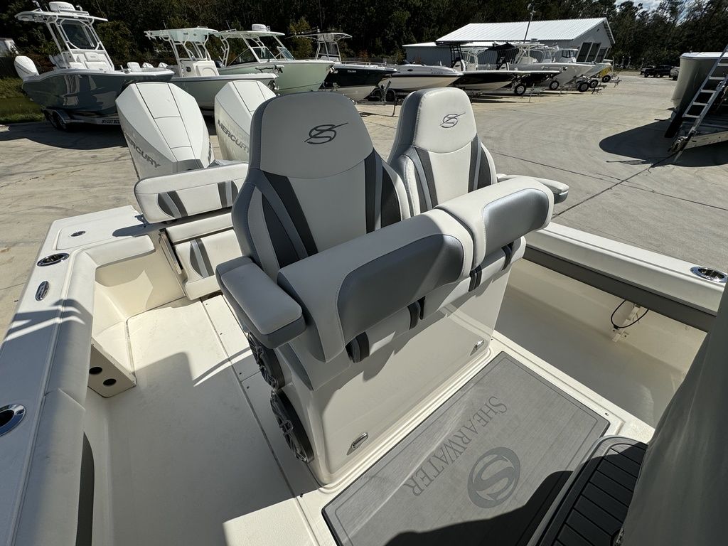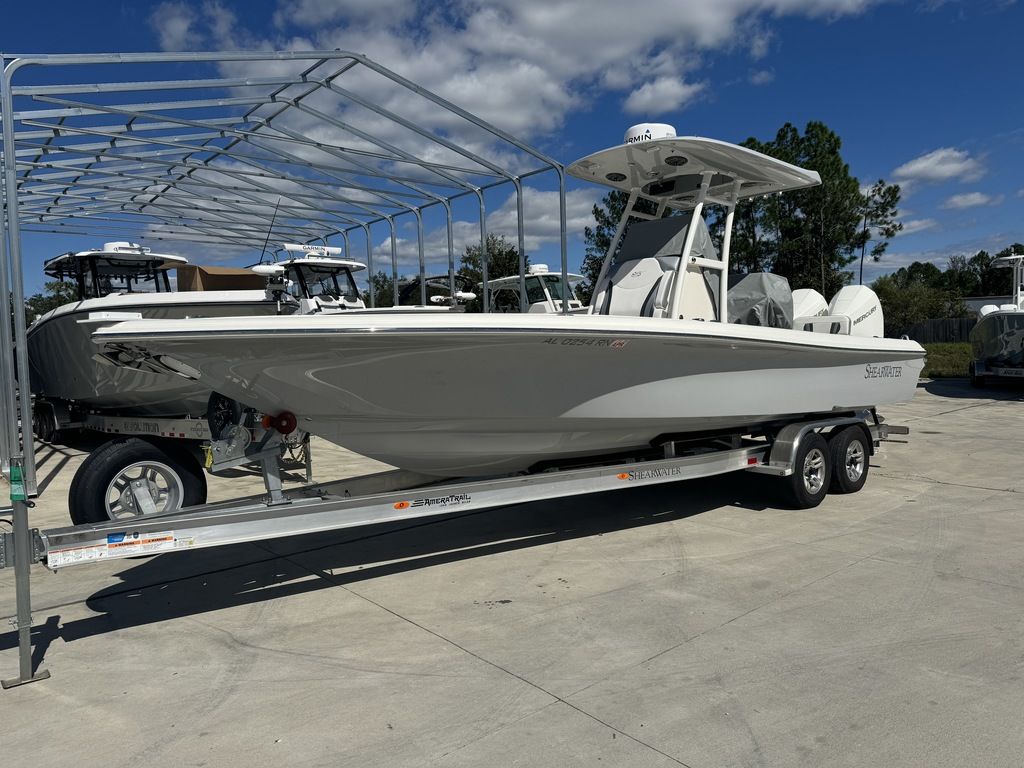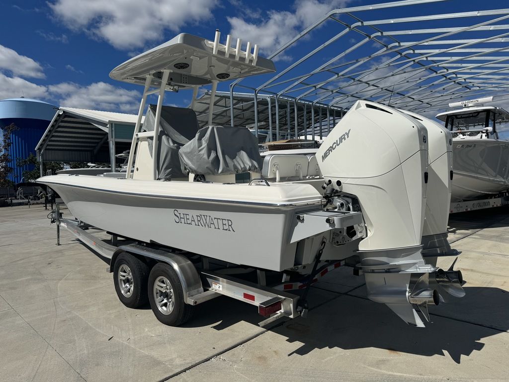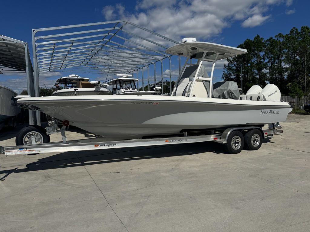 This 2023 Shearwater 27 Carolina Open comes powered by Twin Mercury 225 with 60 hours! Some of the installed options include Twin Garmin 12" MFDs, Garmin Domed Radar, Mercury Vessel View, JL Audio Sound System, Flip Up Aft Seating, Leaning Post Live Well, Twin Helm Seating, Console Lounger with Split Storage, Misters, Console and Leaning Post Covers, and a Tandem Axle Evolution Trailer! www.grandermarine.com | 251-271-0166