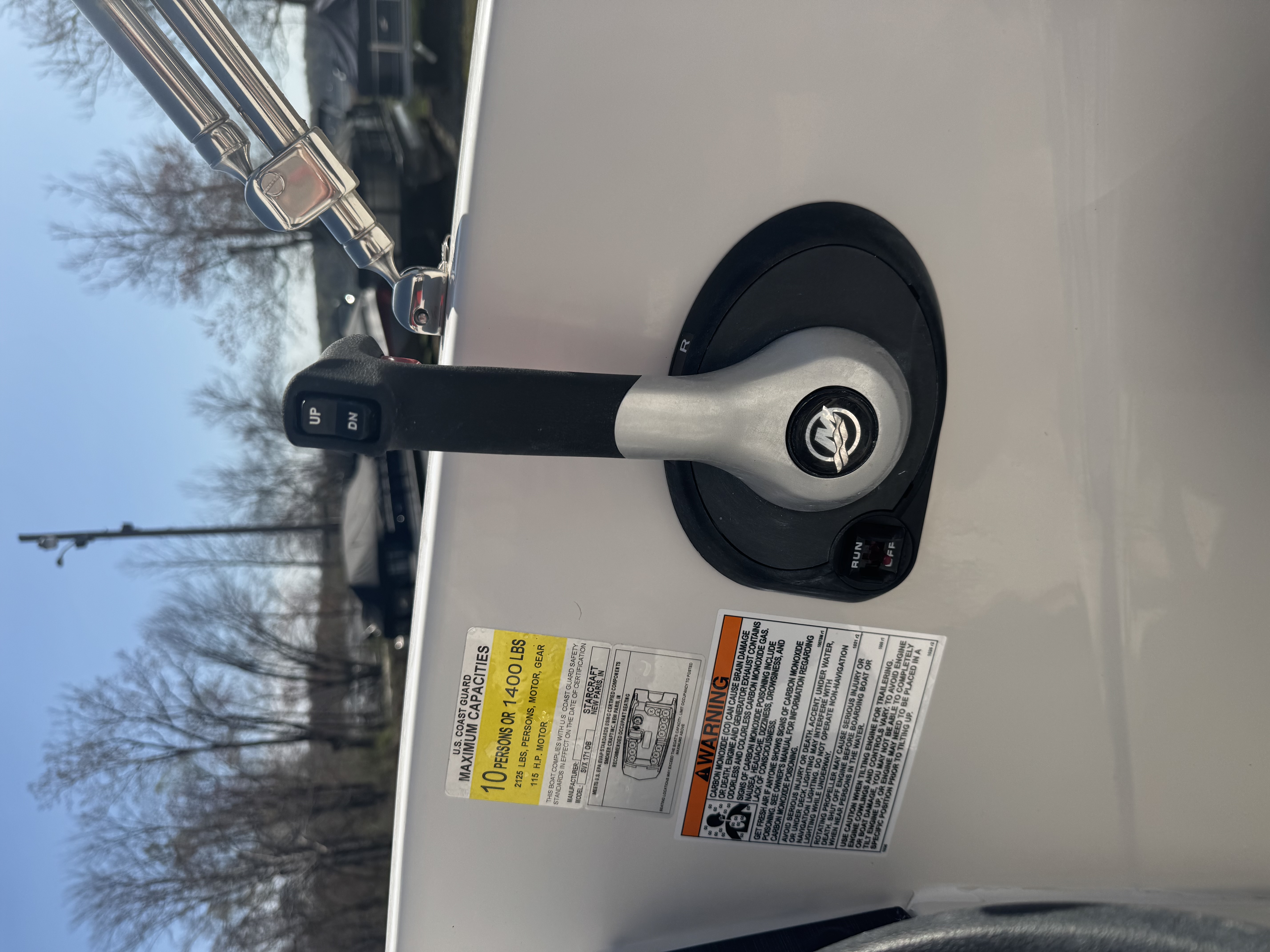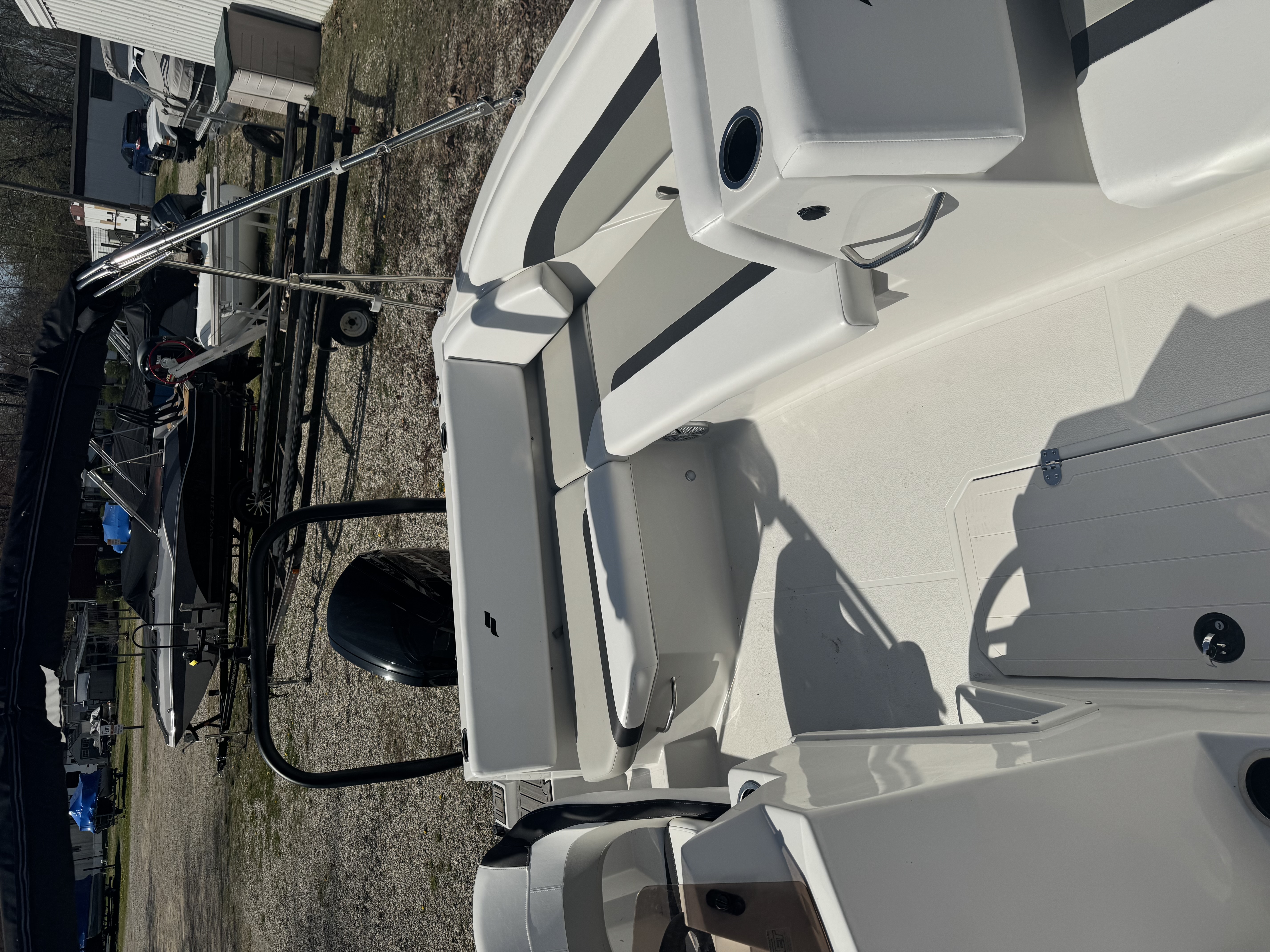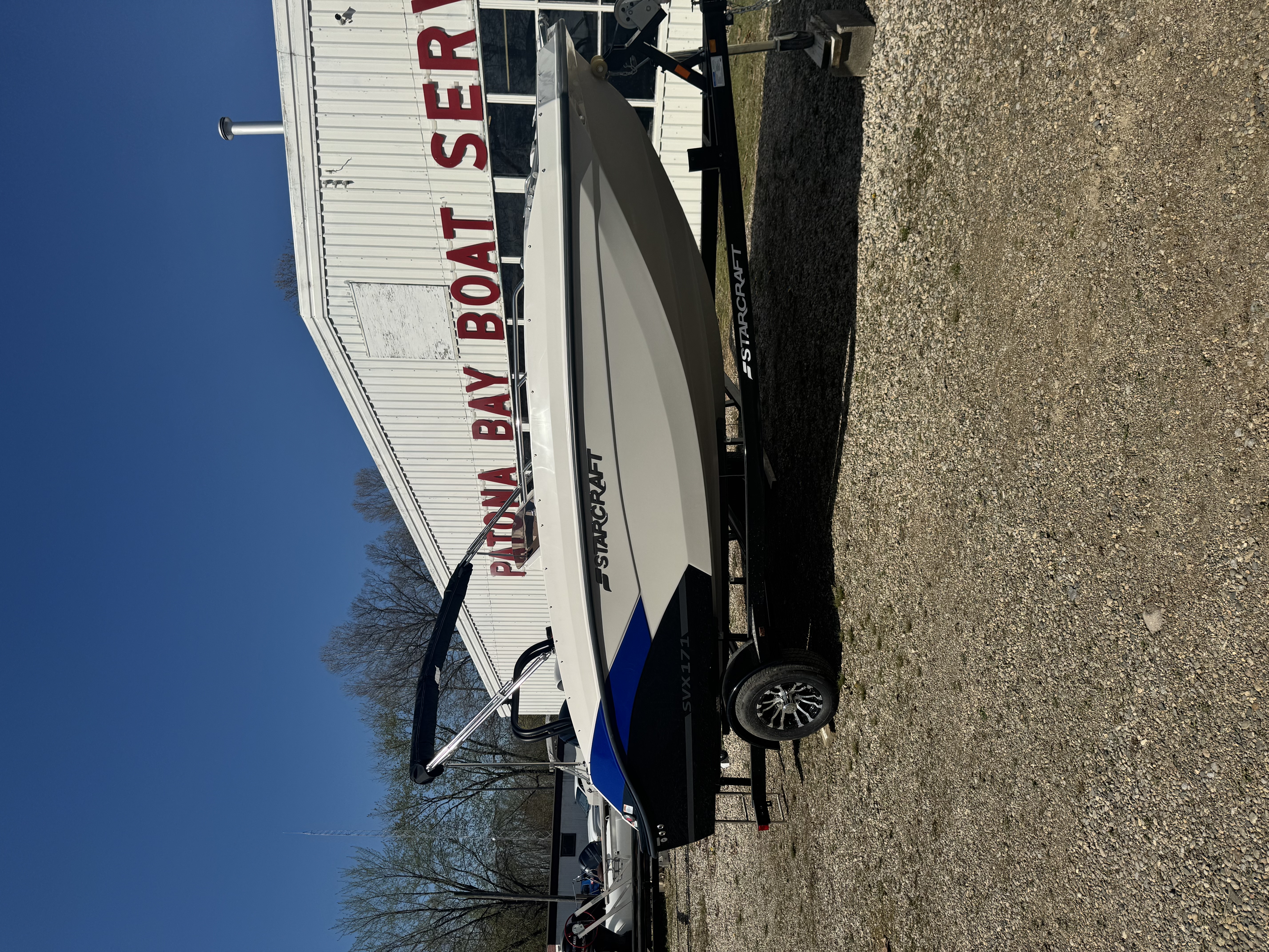 THIS SVX 171 WAS ORDERED WITH THE FOLLOWING OPTIONS: MERCURY 115 ELPT 4S CT EFI. UPGRADED COLOR PACKAGE - BLUEBERRY, HYDRAULIC STEERING, SKI TOW RACK, DOCK L.IGHTS, TABLE KIT, STAINLESS STEEL BIMINI TOP, TRIM GAUGE, COCKPIT COVER, TRAILMASTER TRAILER, SINGLE AXLE w/BRAKES & SWING TONGUE