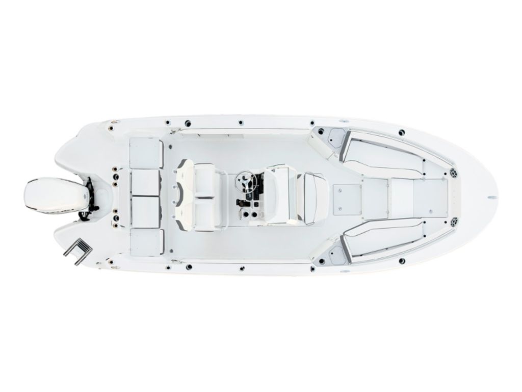 Fishing rods and accessories are easily accessible thanks to abundant rod storage around the boat, including molded-in gunnel storage port and starboard, built-in holders on the leaning post, holders at the stern, and holders built into the optional T-top.